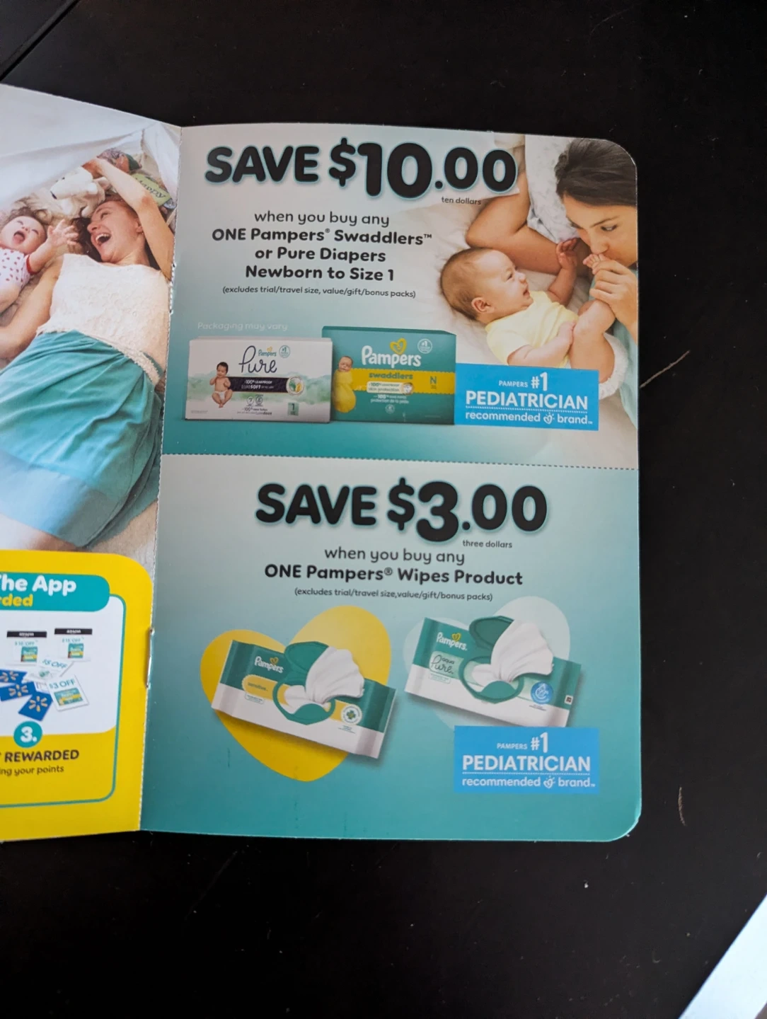 Save $10 on Pampers Swaddlers or Pure Diapers Newborn to Size 1. Also save $3 on any ONE Pampers Wipes Product. Excludes trial/travel size, value, gift, and bonus packs.