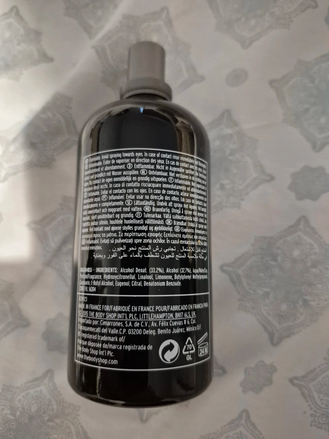 The Body Shop Activist Eau de Toilette is a 100 ml bottle. It's made in France for The Body Shop International PLC. The ingredients include Alcohol Denat., Aqua/Water/Eau, and Parfum/Fragrance.