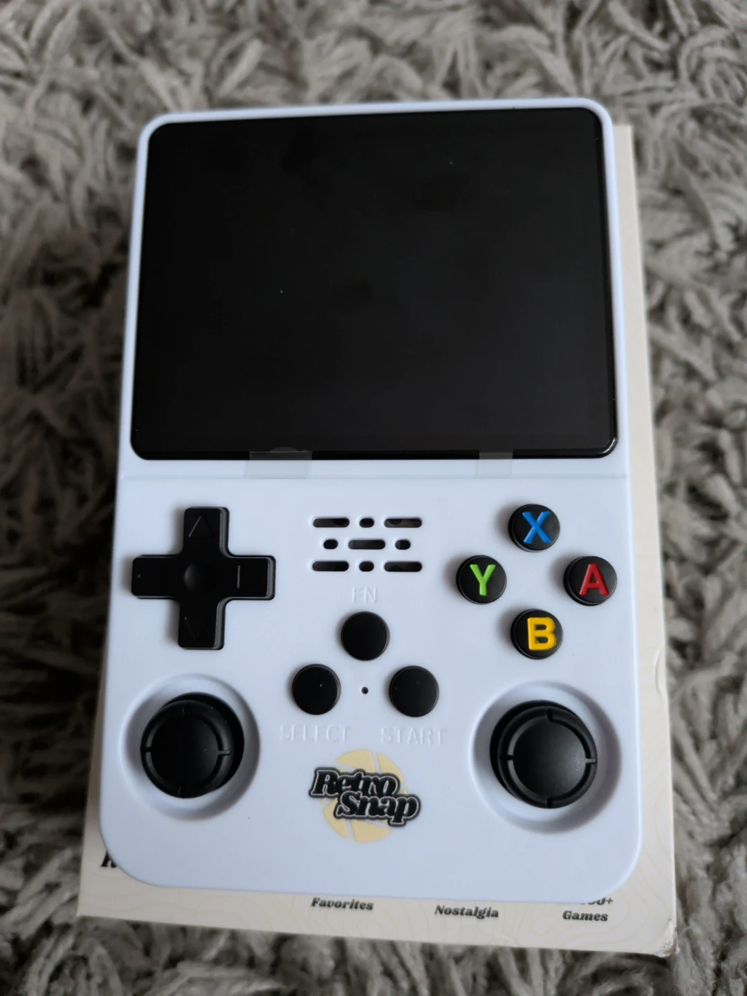 This white Retro Snap handheld console comes with a charging cable and protective case. It offers 20,000+ games for endless fun. Relive childhood favourites with this compact gaming device!