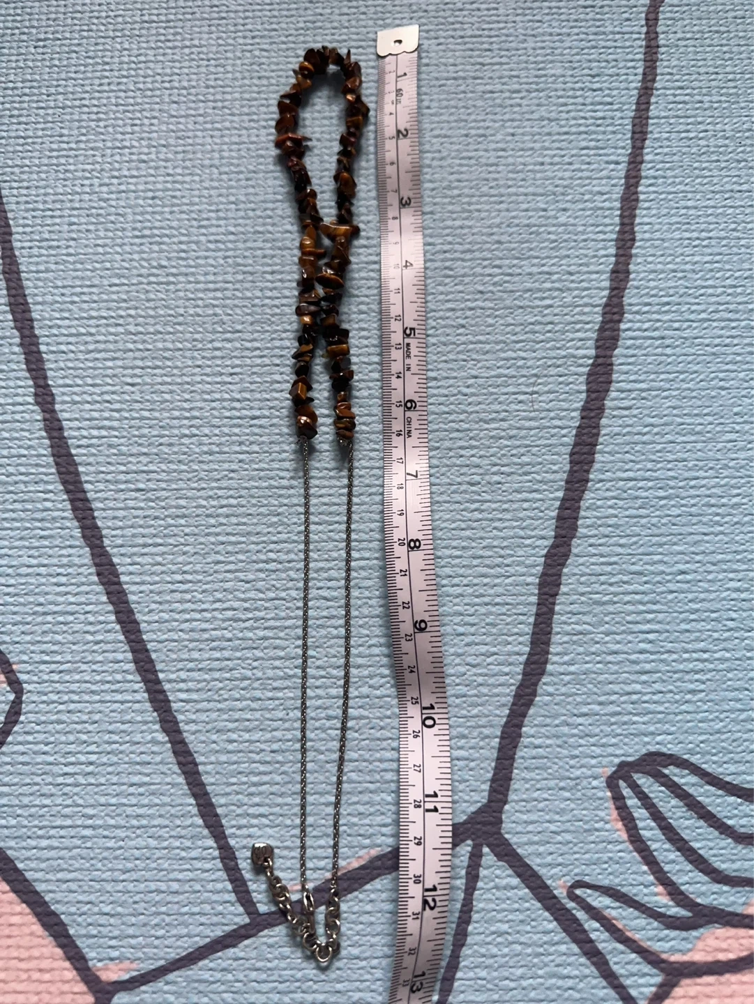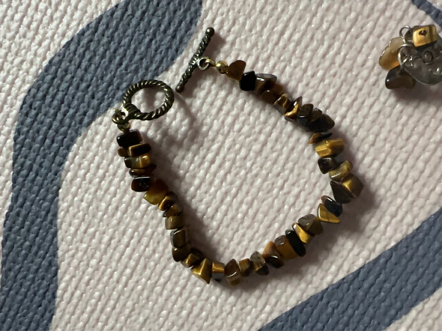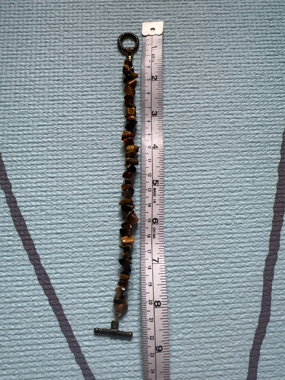 A beautiful set featuring a bracelet and earrings made with natural tiger eye stones. The bracelet has a toggle clasp closure. This unique set adds a touch of natural elegance to any outfit!