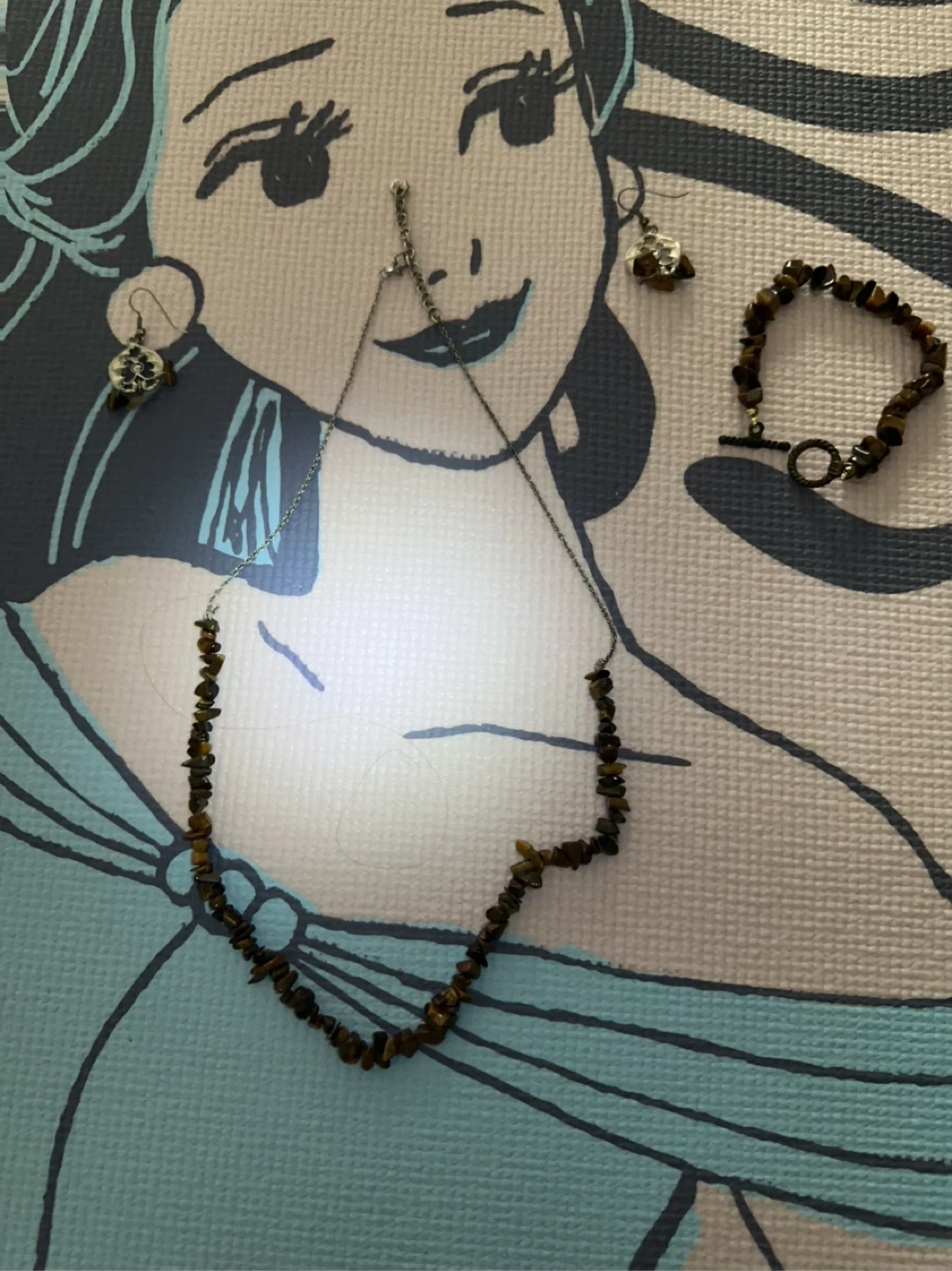 Tiger Eye Stone Bracelet, Necklace and Earrings Set