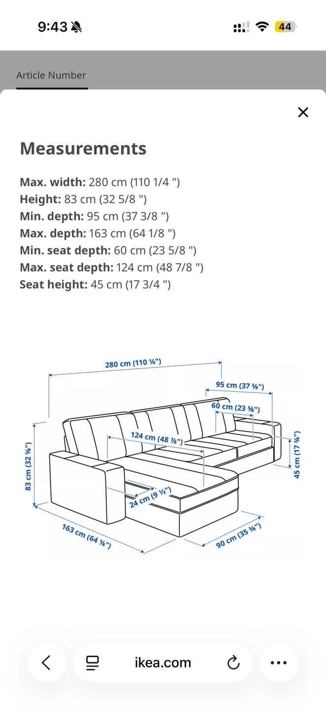 Selling our grey IKEA Kivik sectional couch / sofa