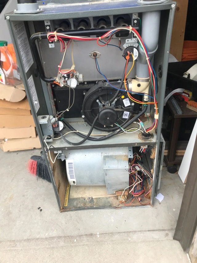 Blower motor and pressure switches are good. The heat exchanger is still good and has a lifetime warranty in my name. I have the control board, but I'm not sure if it has a problem. Other parts include the main furnace box and the blower motor with the wheel. The gas valve is still there too. Let me know what you need, and I'll get back to you with a price.