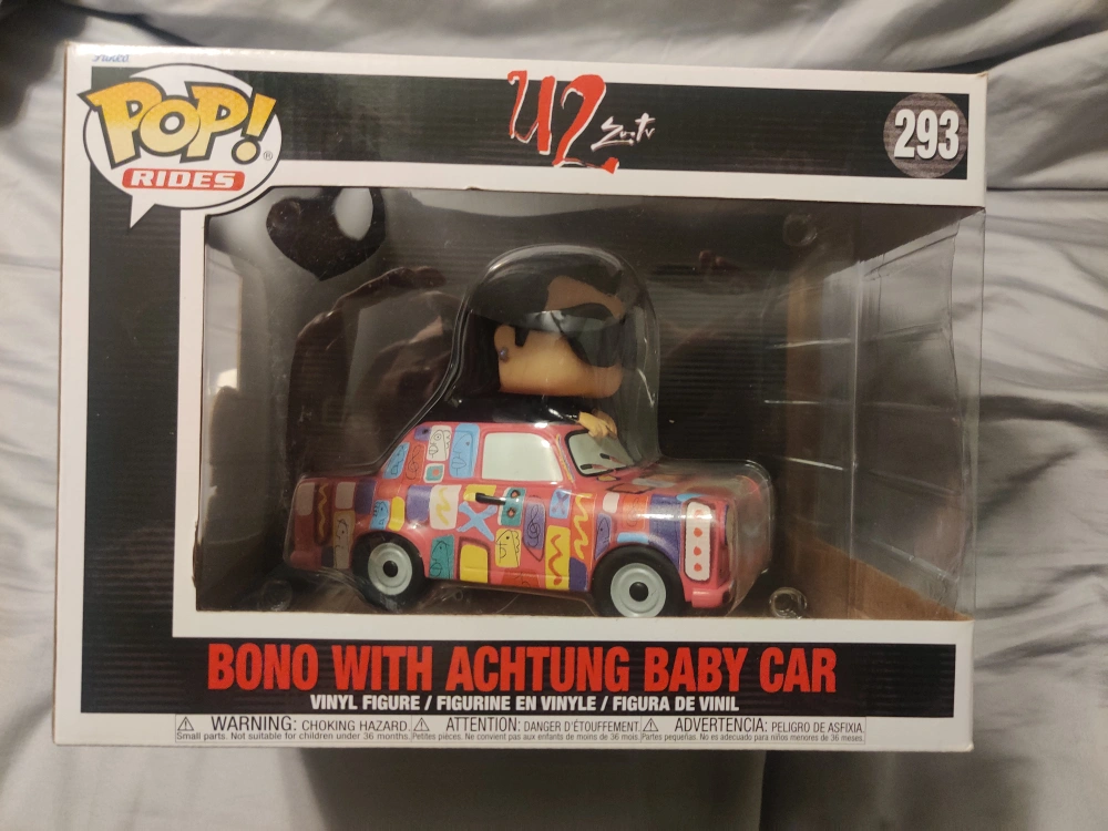 Selling a Funko Pop! Rides figure of Bono with the Achtung Baby car from U2. This is number 293 in the series. It's a great collectible for any U2 fan or Funko Pop enthusiast!.. brand New in Box