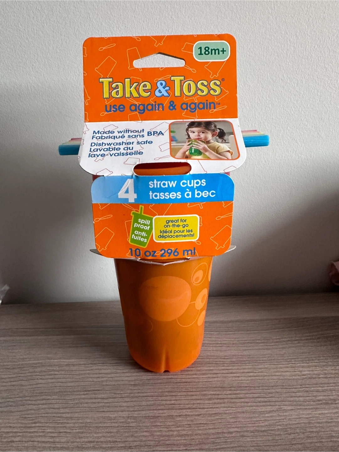 4x Take & Toss straw cups are made without BPA. They're dishwasher safe and reusable. Each cup holds 10 oz (296 ml). They're great for daycare, playdates, parties and more!