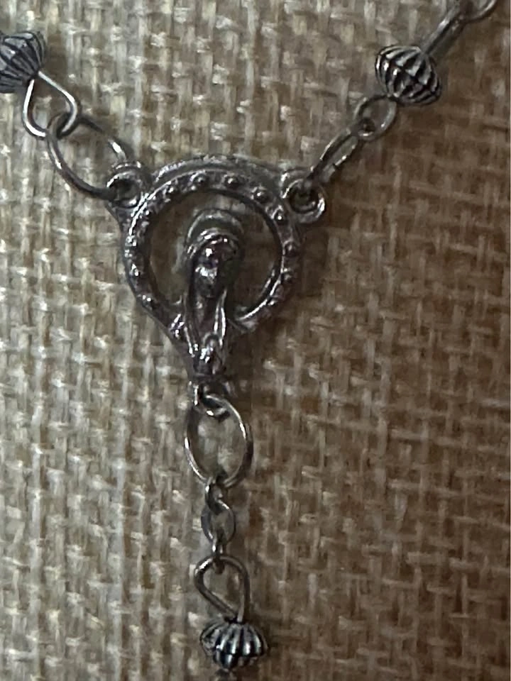 Buy & SellVintage Silver Tone RosaryVintage Silver Tone Rosary$18Vintage silver tone rosary in excellent original vintage condition. Miraculous Mary medal, filigree detail crucifix. Measures 22” necklace.WHERE TO MEETCheck LocationView MapSELLERverifiedDeLorraWelland1223 reviews0 chats·0 favorites·13 viewsSEND CHAT TO SELLERHi DeLorra! I’m interested in your listing.Hi DeLorra! I’m interested in your listing.Get the Karrot app to chatSign In to chat