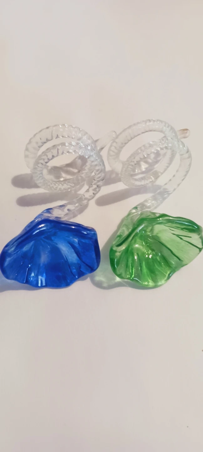 Set of 2 Murano Art glass napkin rings. They have a shell-like shape in blue and green. Excellent condition. 2"×2". ALL MY PRICES ARE NEGOTIABLE !!