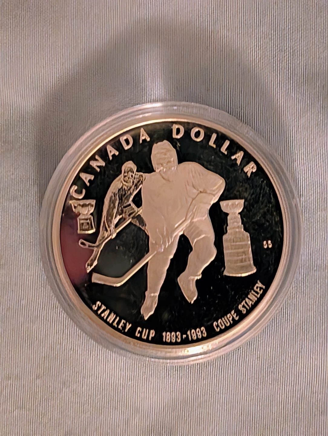 This is a 1993 Canadian $1 Stanley Cup 100th Anniversary Proof Silver Dollar coin.