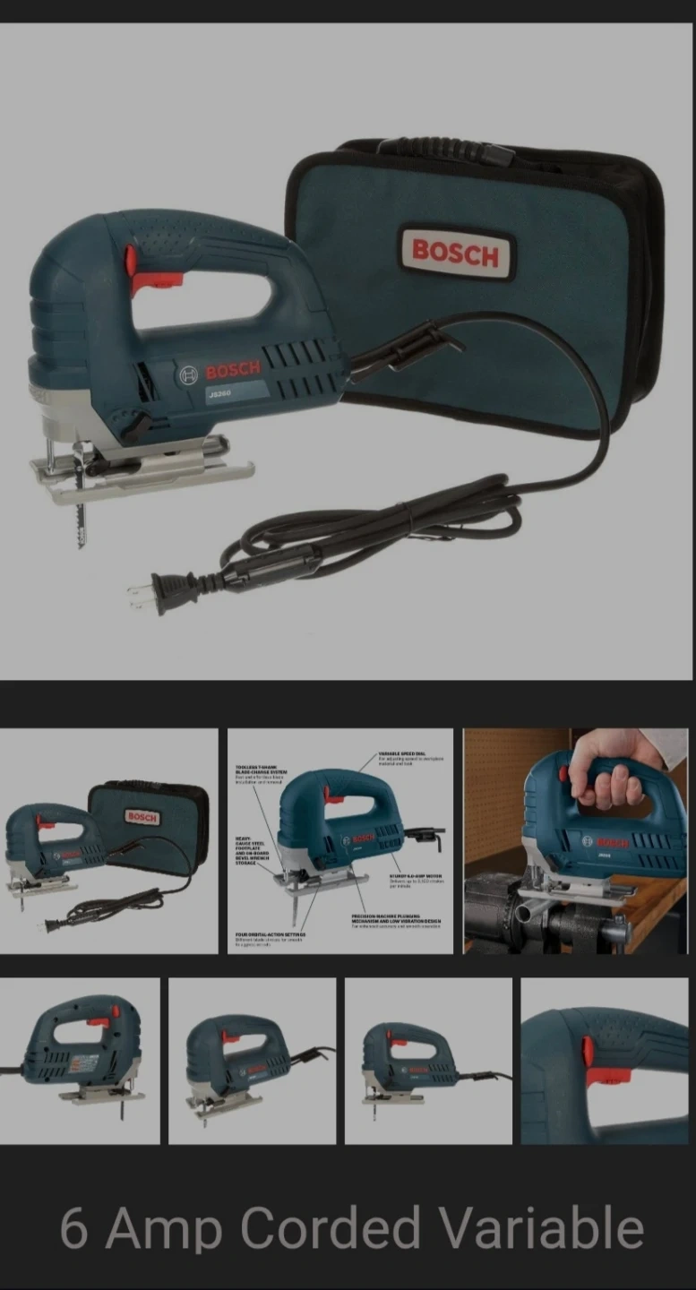 BOSCH JS260 jigsaw with a 6 Amp motor. It's a variable speed model. Includes the original carrying bag.