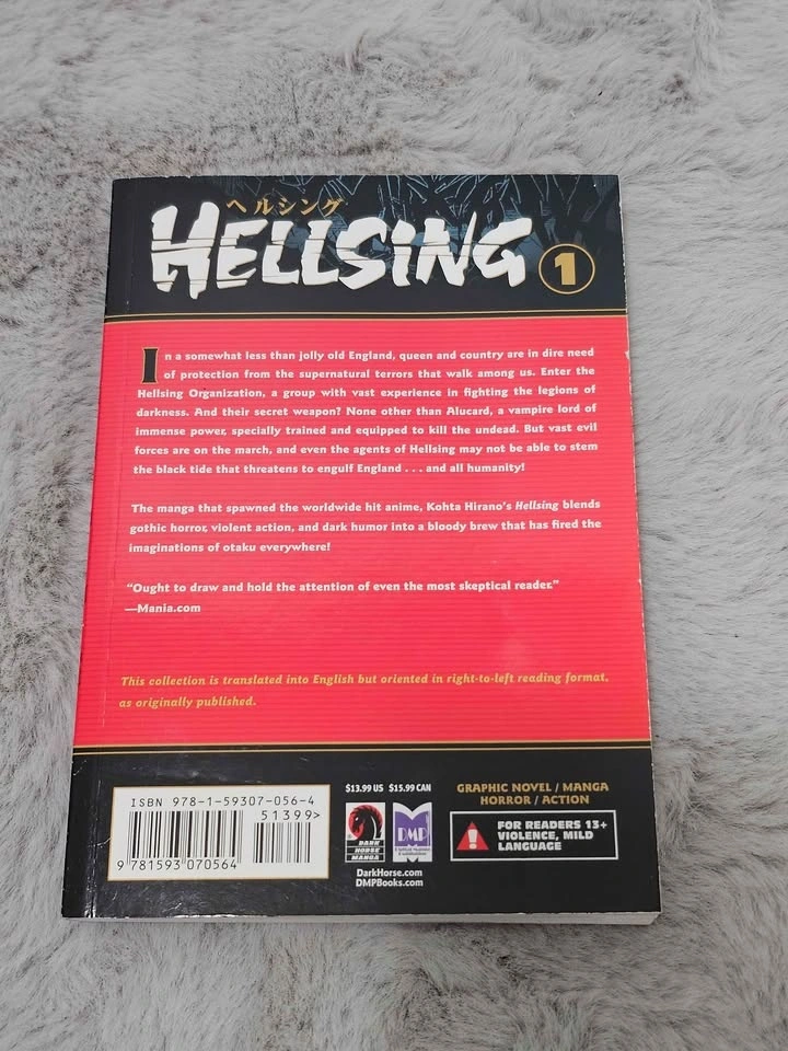 Manga by Kohta Hirano. Dark, action-packed gothic horror series featuring the Hellsing Organization and the vampire Alucard. A cult classic that inspired the popular anime adaptation. Used, in good condition. Clean pages, light wear on the cover and edges (see photos). Pickup in Coquitlam. Cash only.