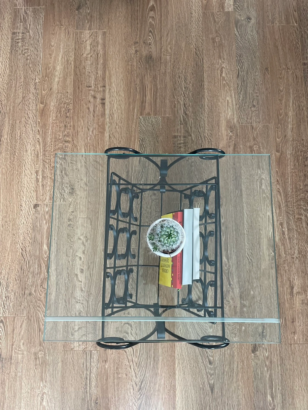 It have a glass top removable feature and have line on the top of the glass giving a contemporary look