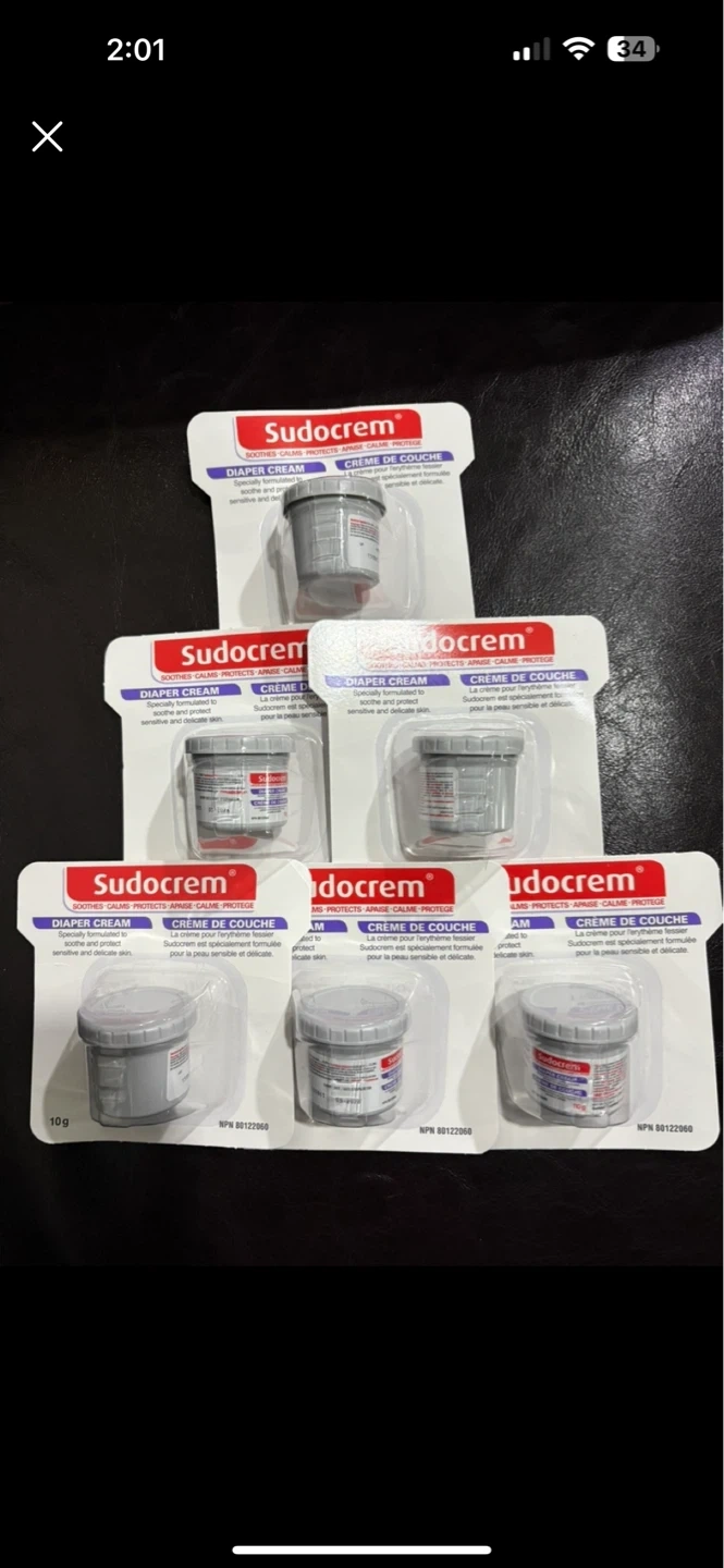 This listing is for six 10g jars of Sudocrem Diaper Cream. It's specially formulated to soothe and protect sensitive and delicate skin. These are handy travel-sized jars, perfect for on-the-go needs.