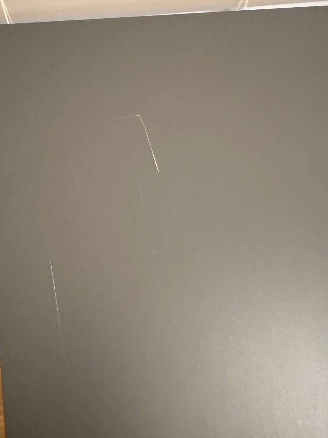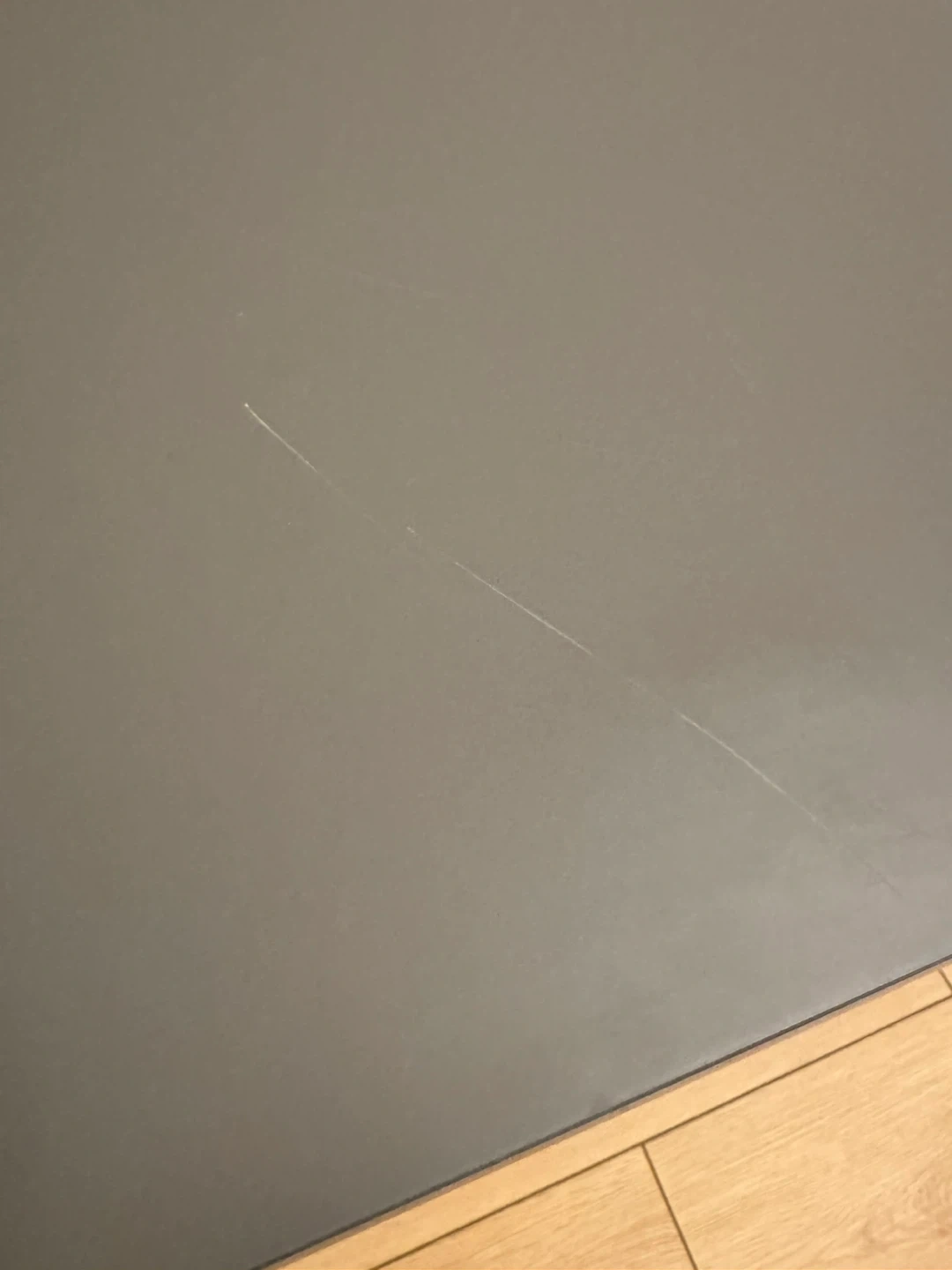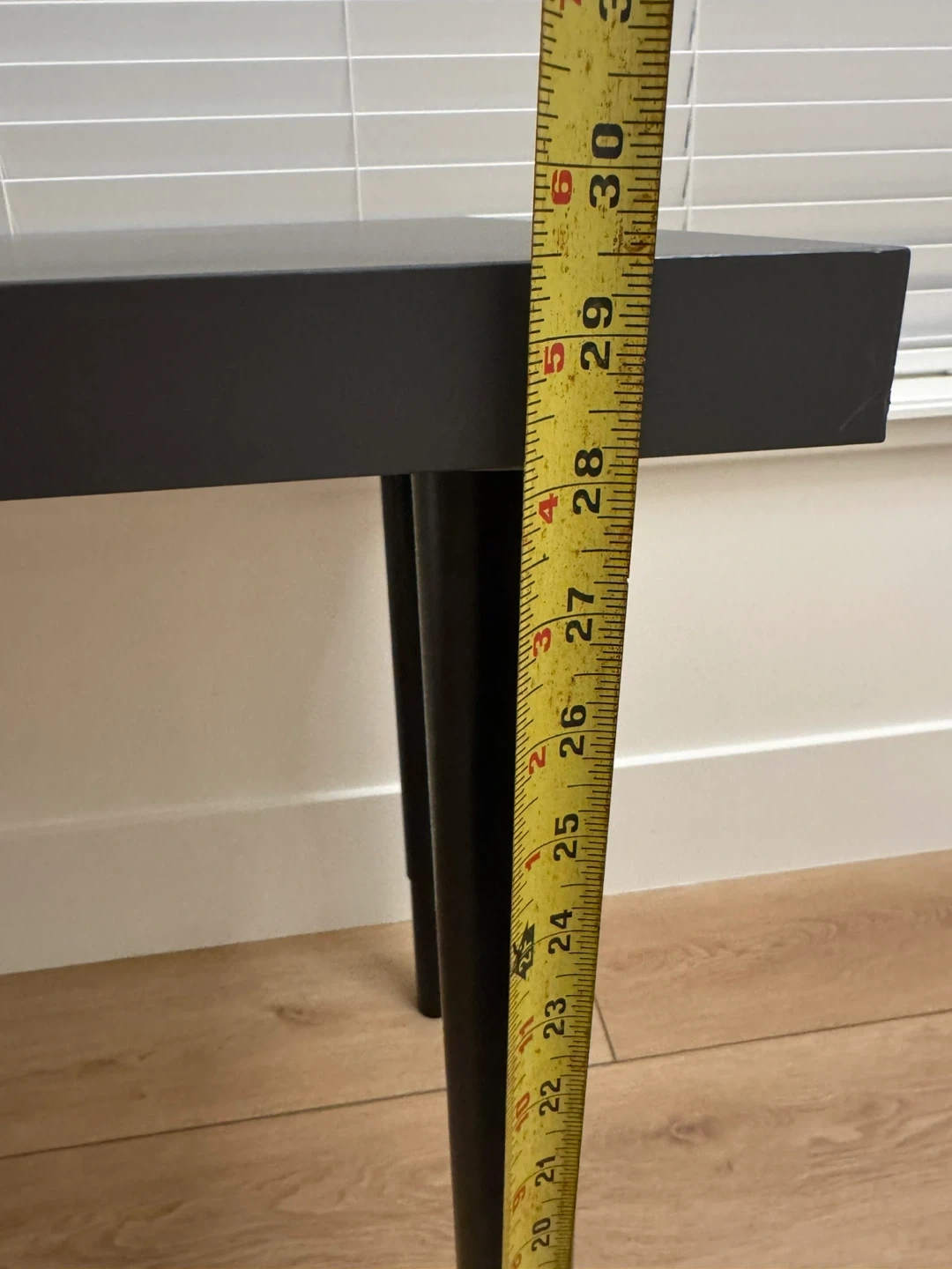 Small table - dark grey top with black legs. It has some light scratches on the surface, visible in the photos.