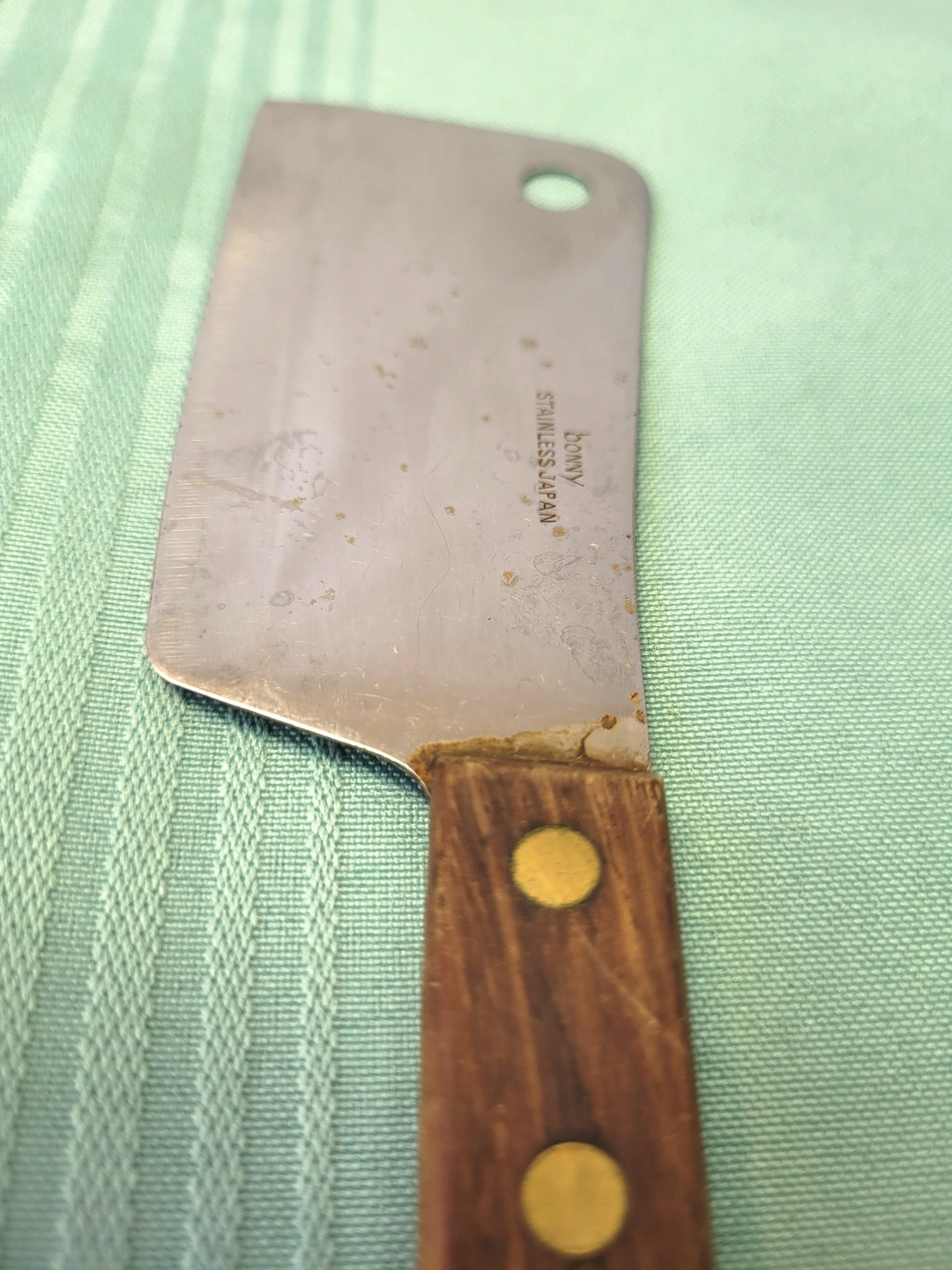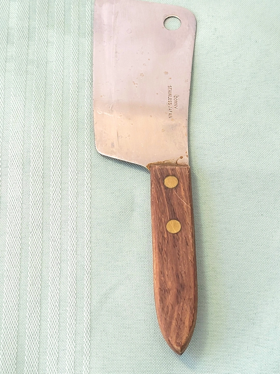 Vintage 70s Bonny Mini Cheese Cleaver Knife Stainless Japan Wood