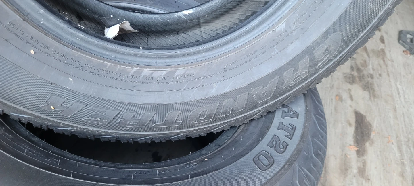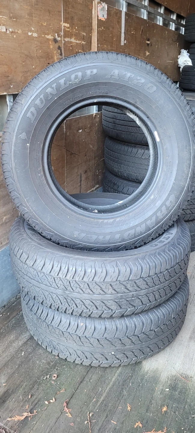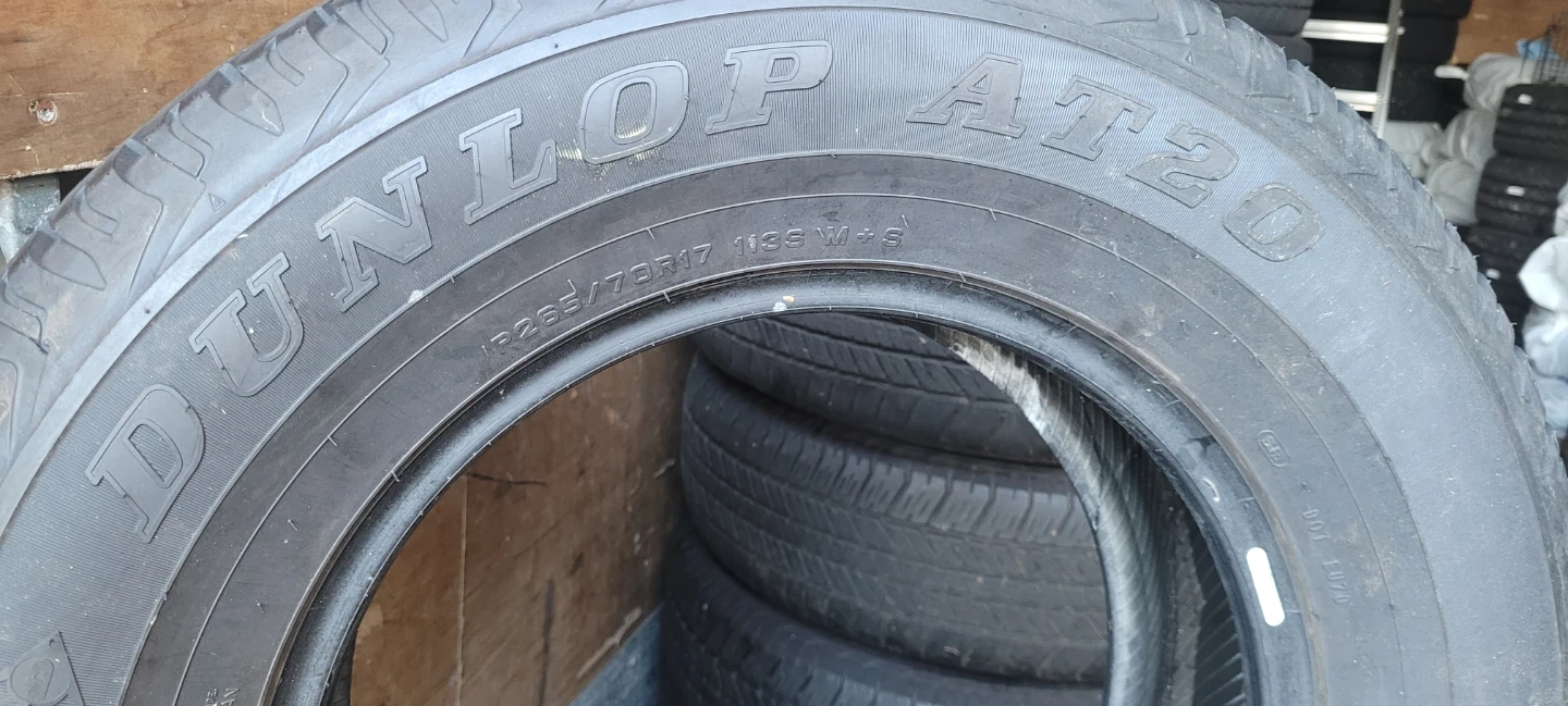 Set of Dunlop Grandtrek AT20 tires. Size is P265/70R17 113S. These tires are great for all-terrain use.