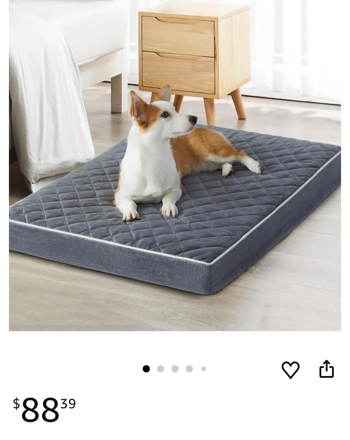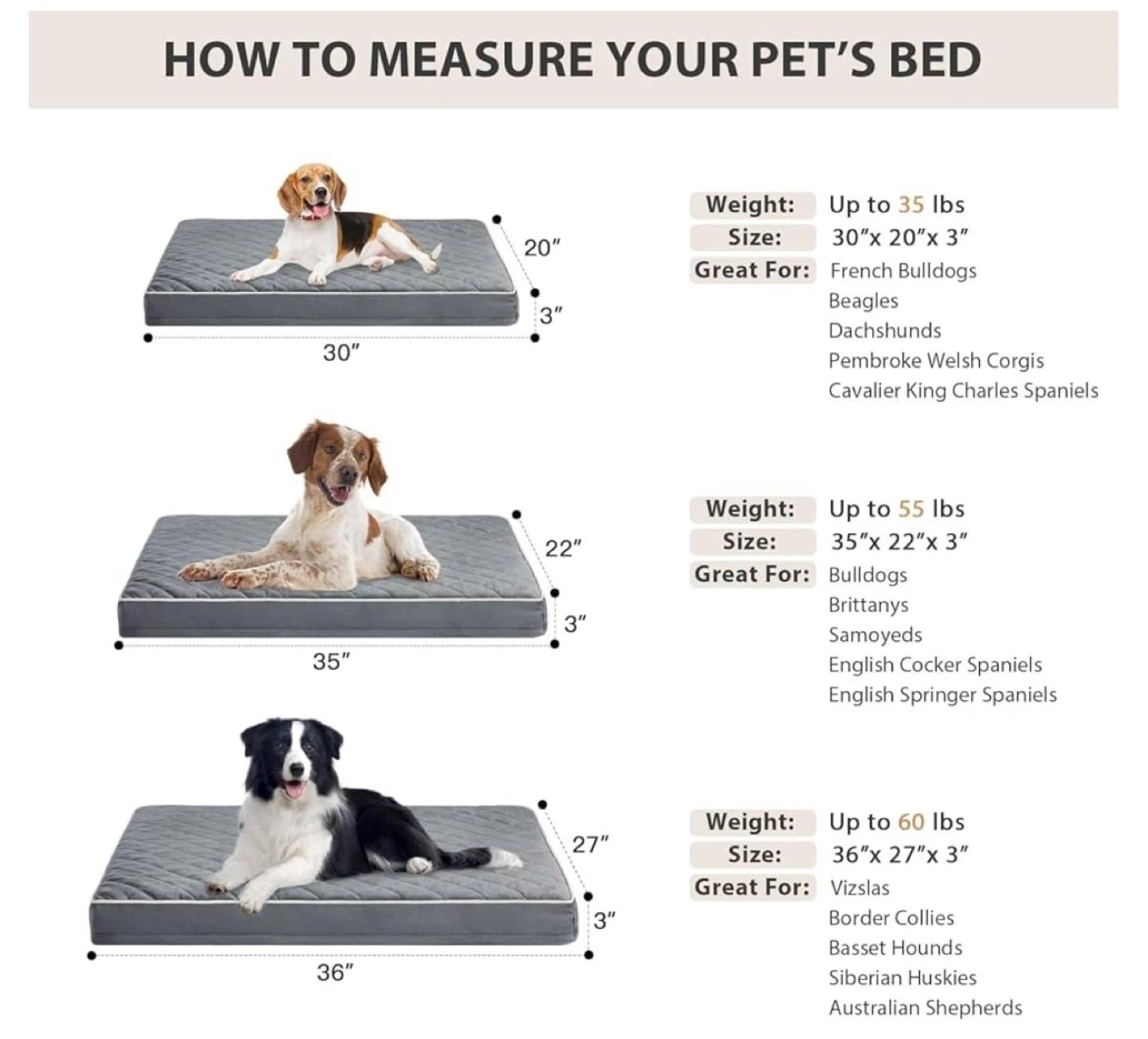 GREY QUILTED PLUSH DOG BED (33”x27”x3”)