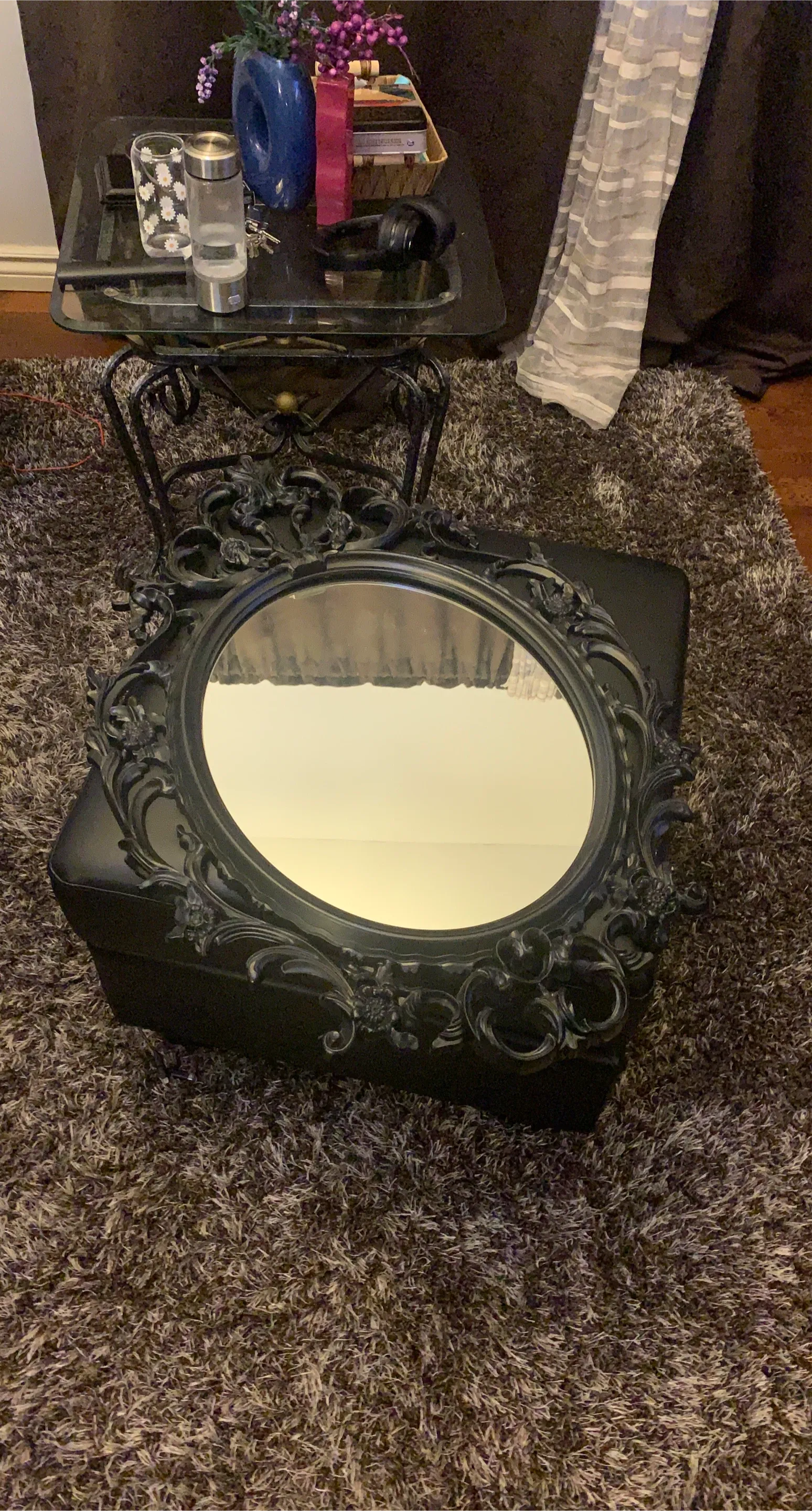 Ornate Black Oval Wall Mirror