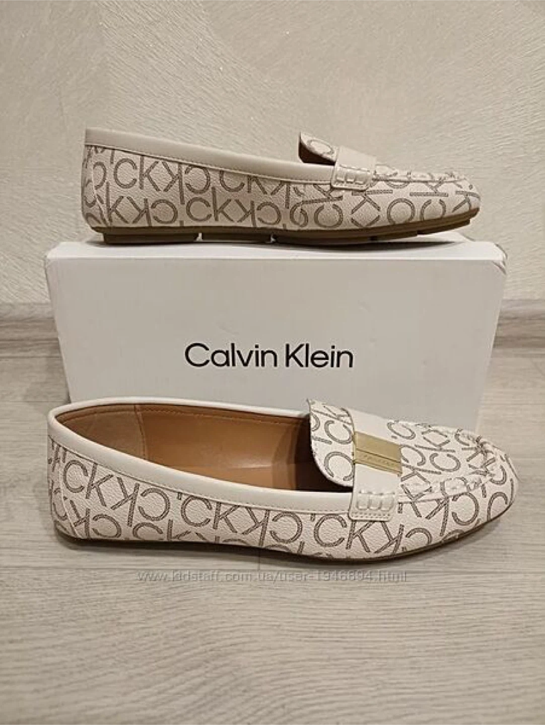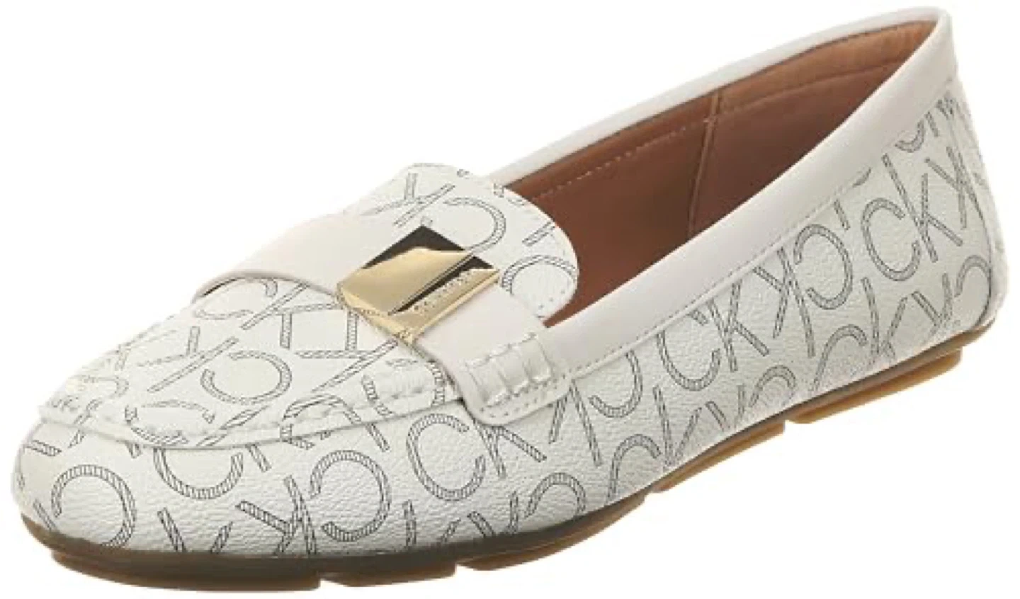 These Calvin Klein loafers feature the signature CK monogram pattern all over. They have a stylish gold buckle detail on the vamp. Perfect for adding a touch of brand recognition to your outfit!