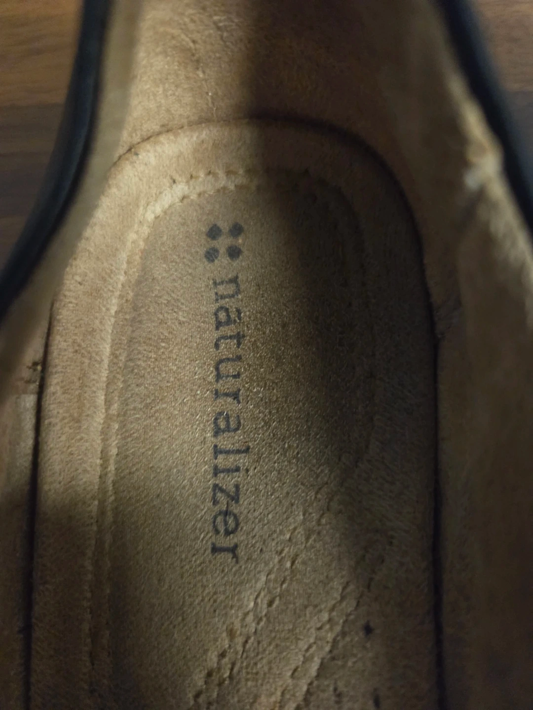 These Naturalizer loafers are black and made of leather. They're a women's size 7 medium. Perfect for everyday wear!