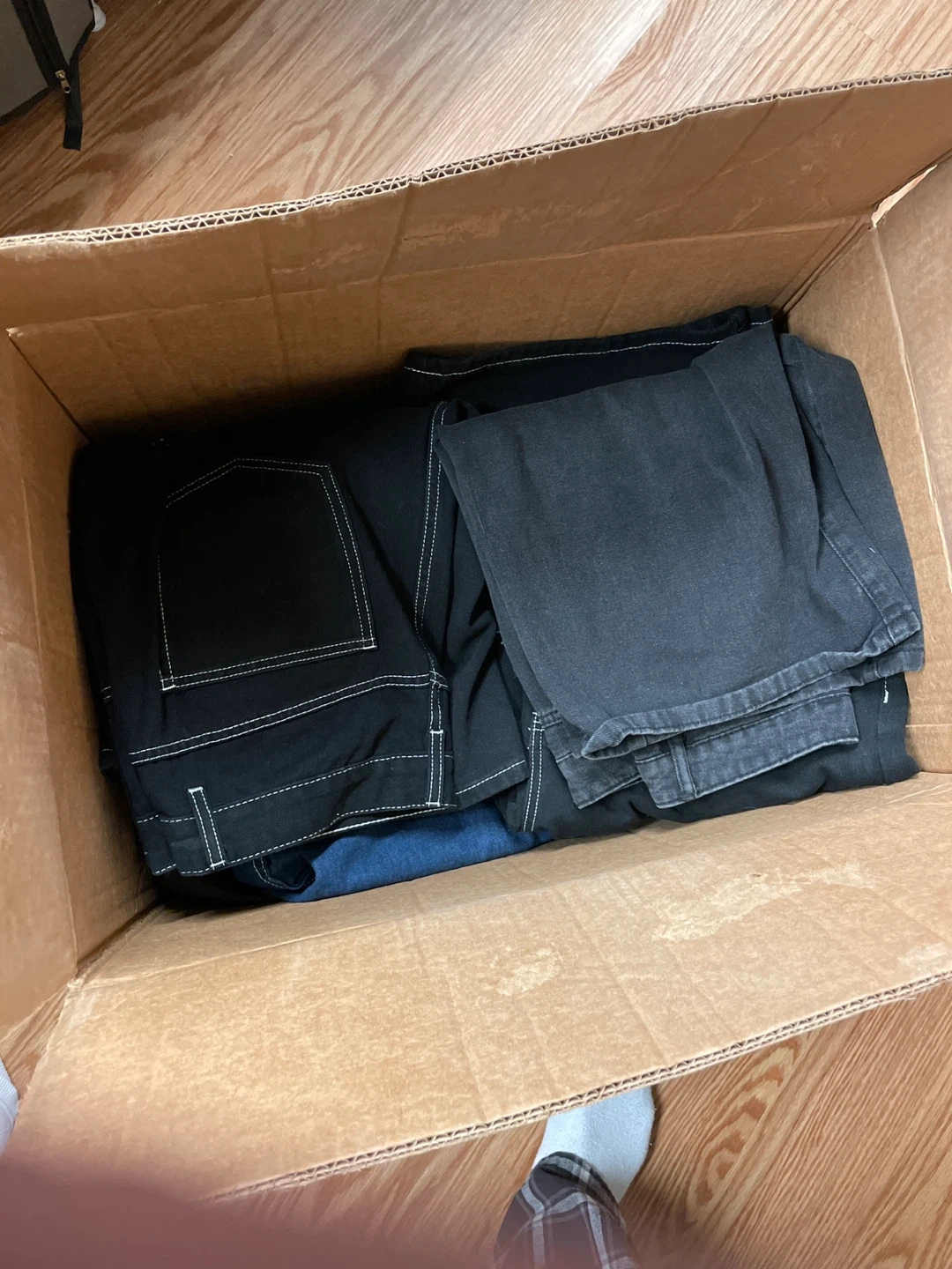 I got a box clothes that I either don’t wear anymore or it was too big or small when giving to me and the answer to your question no these ain’t clothes I just picked up off the ground out front of a sally Anne, iv either had em for a while and don’t wear anymore or I went online (temu) went hard on that when i first discovered it, some of it I liked some I didn’t