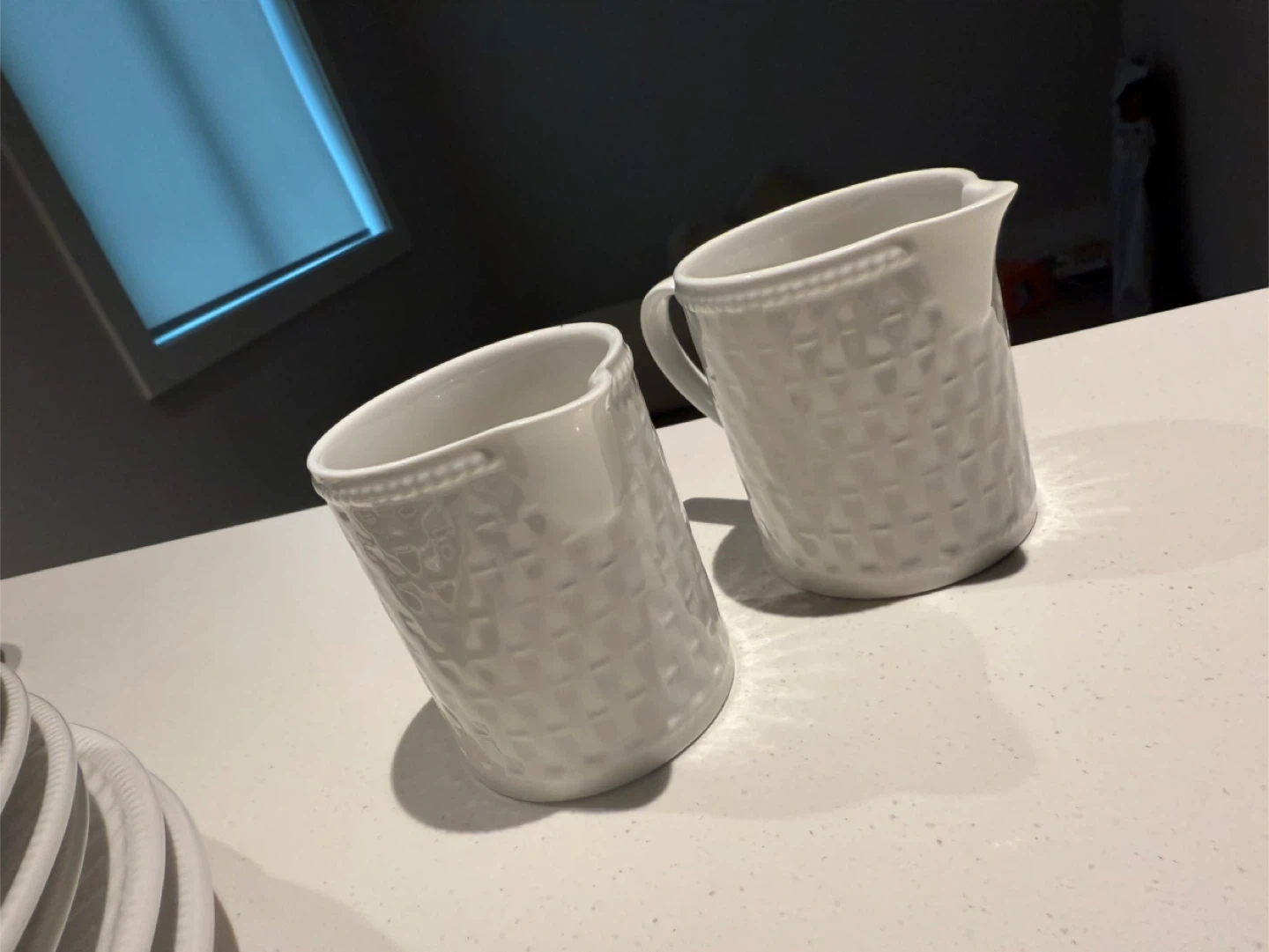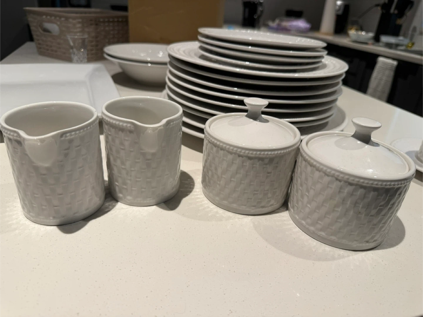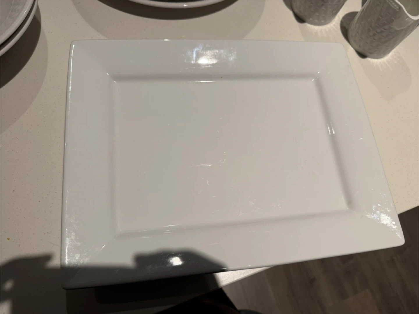 Selling a collection of assorted white dishes, including plates, a rectangular tray, mugs, a vase, and pitchers. Great for everyday use or special occasions!