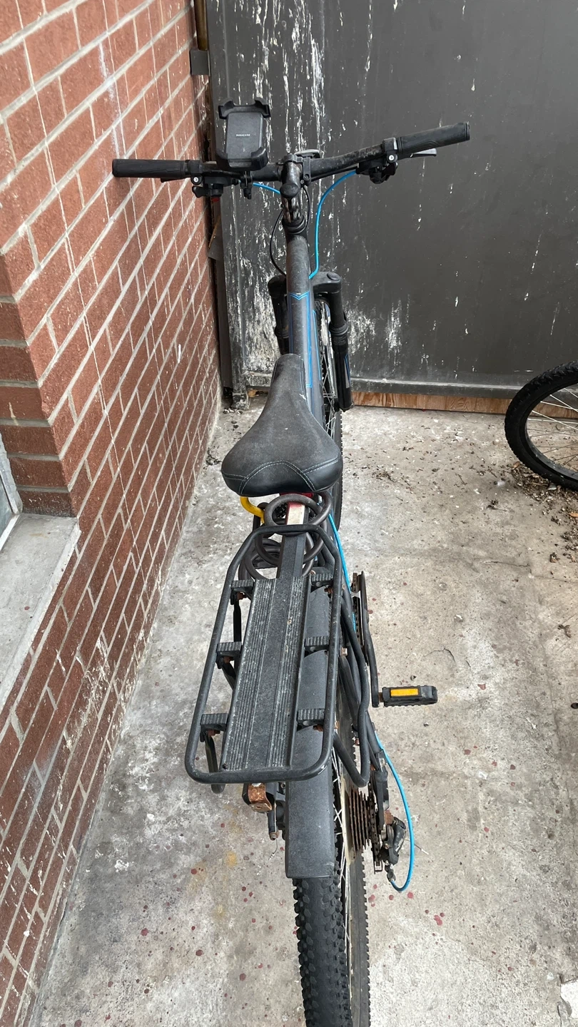 This CCM Ridge mountain bike features a durable frame and a rear cargo rack. It comes with front and rear fenders for added protection. Suitable for everyday commuting and light trails.