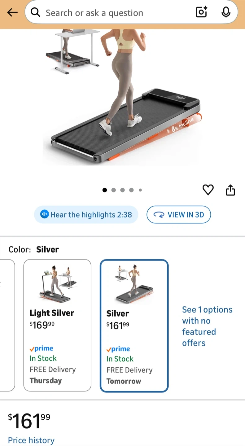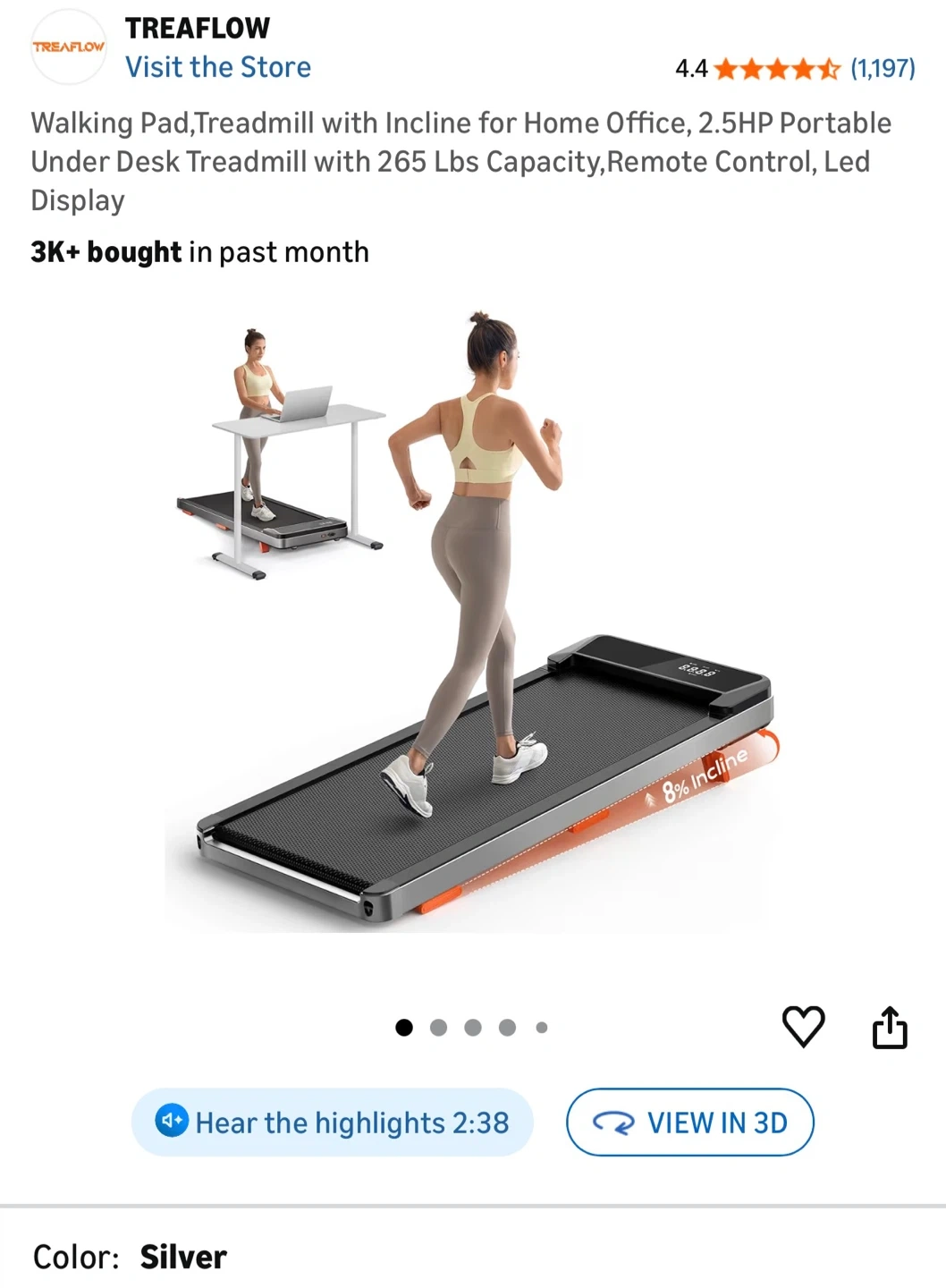 TreadFlow Walking Pad Under Desk Treadmill with Incline - Silver
