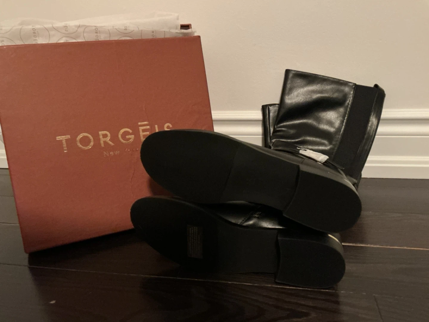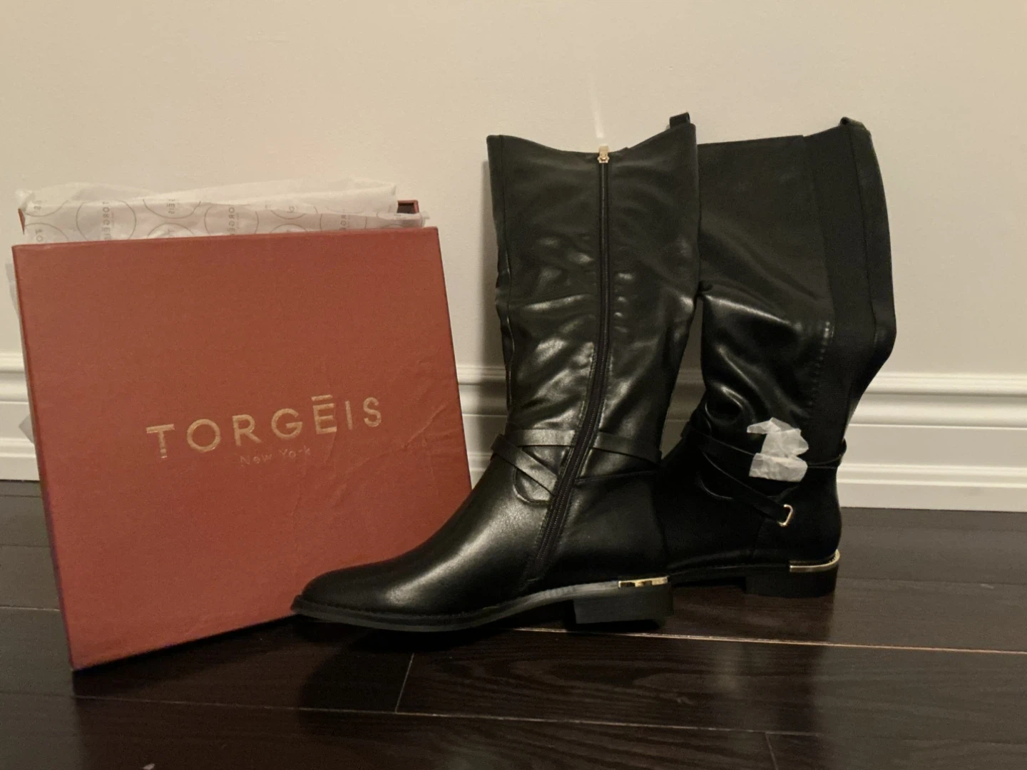 TORGEIS New York Black Faux Leather Tall Boots with Box