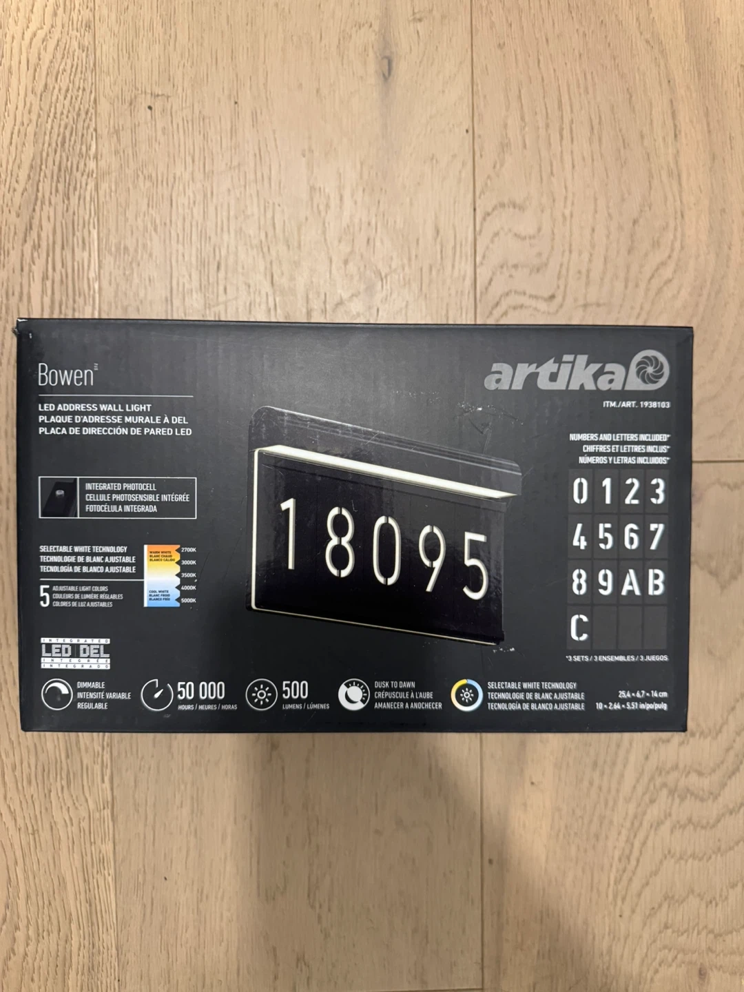 Selling a new Artika Bowen LED Address Wall Light! It's still in its original packaging. The box includes all the necessary components and instructions for easy installation. This sleek, matte black light will add a modern touch to your home's exterior while making your address easily visible at night