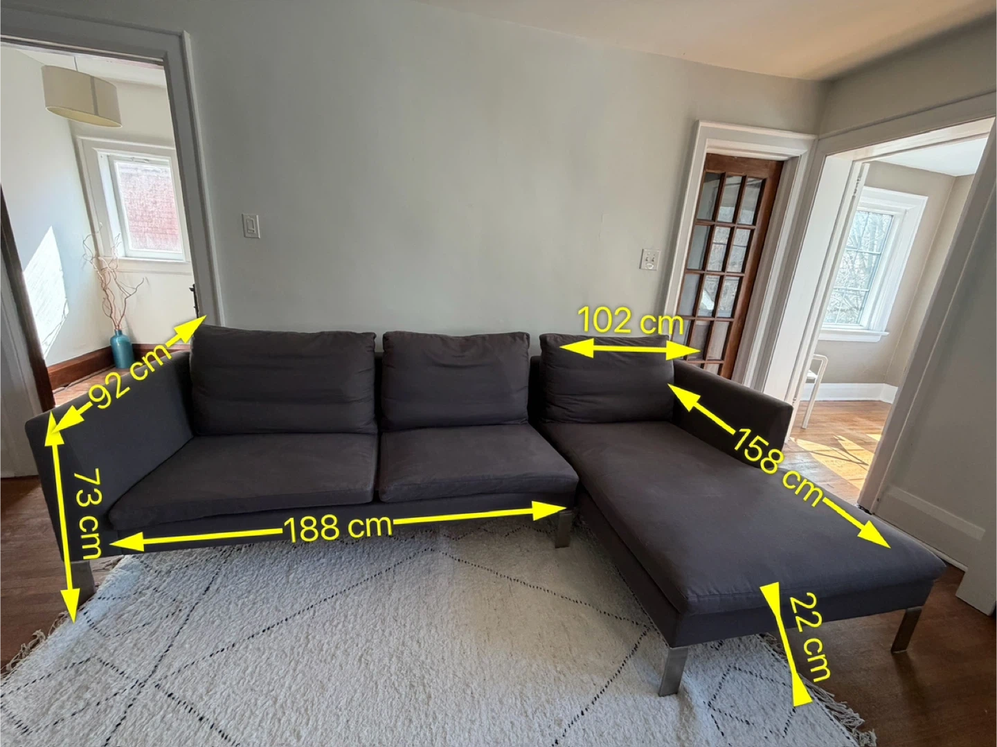 • Sofa width: 188 cm