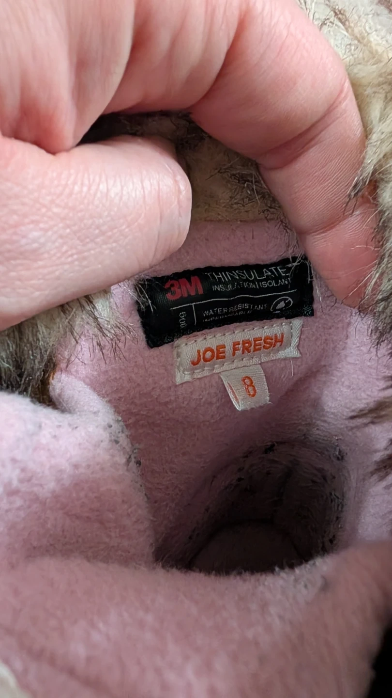Cute pair of Joe Fresh winter boots for kids! They are a size 8 and feature a warm, furry trim. Perfect for keeping little feet cozy this winter season!