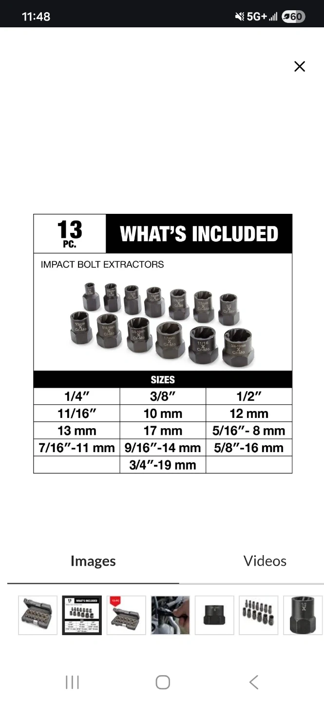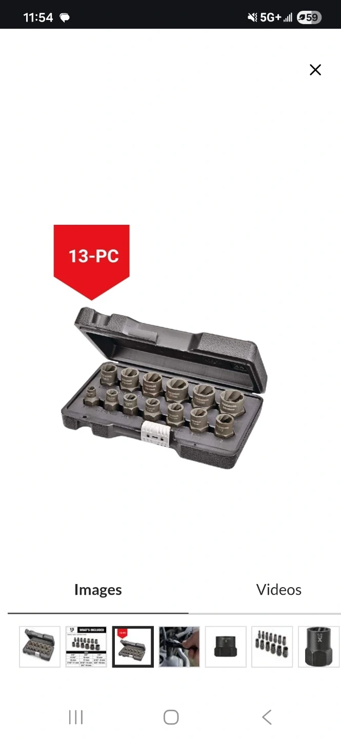 This is a 13-piece impact bolt extractor set. It includes various sizes in both imperial and metric measurements. It's designed for removing damaged or stripped bolts. 3/8-in Drive Impact Bolt Extractor Set, 13-pc, $40.00 pick up only Trenton.