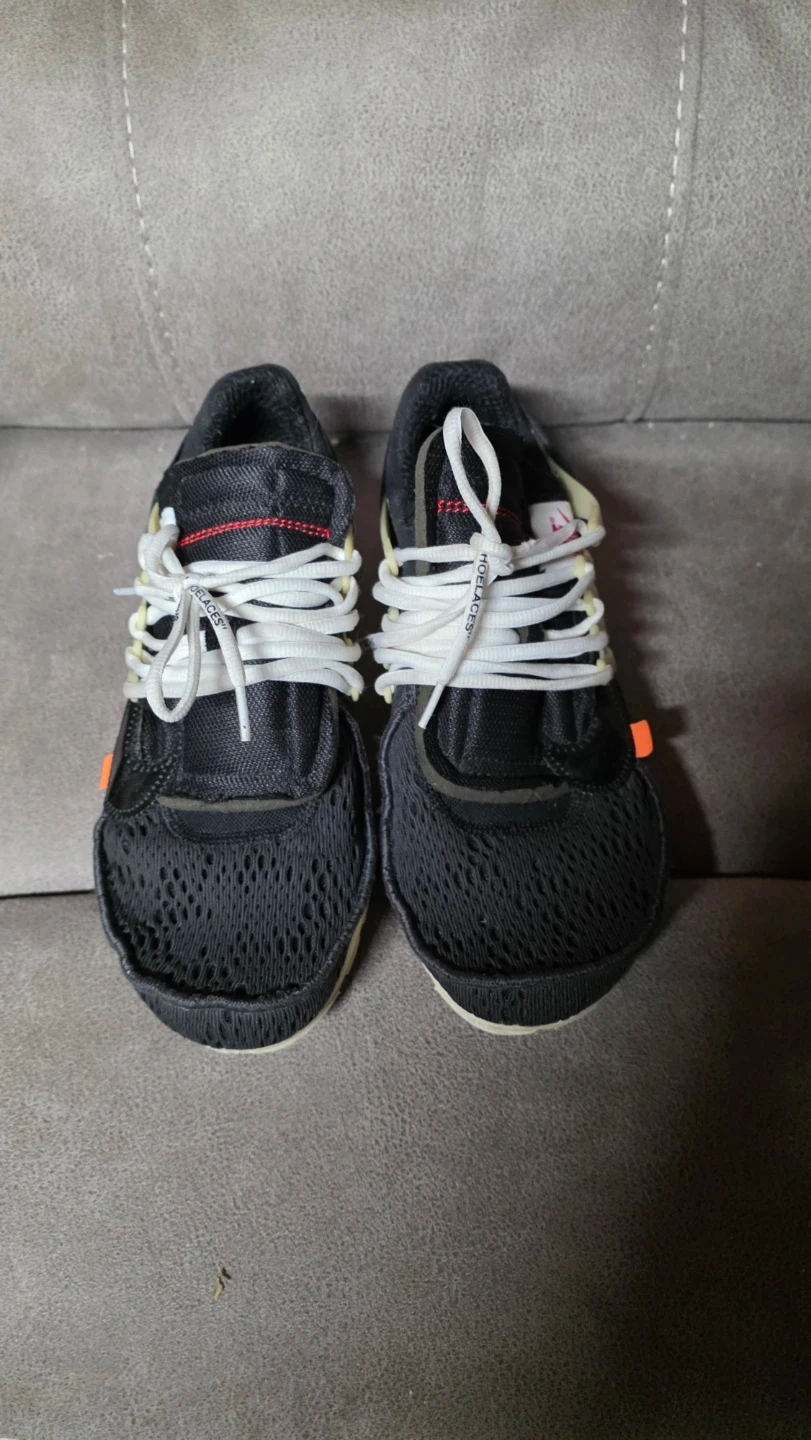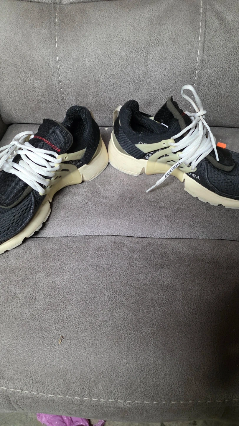 Selling a pair of Nike x Off-White Air Presto shoes! They are in good condition and have a unique design. The shoes feature the iconic Off-White deconstructed look with exposed stitching and bold lettering. They're super comfortable and stylish, perfect for everyday wear!