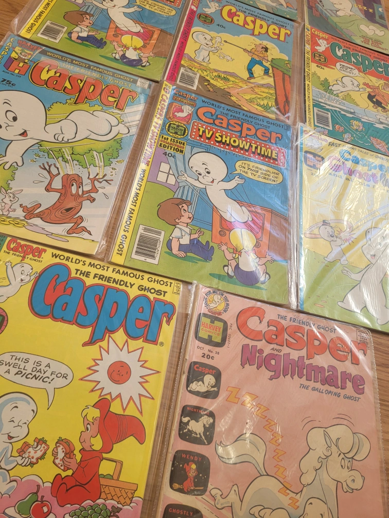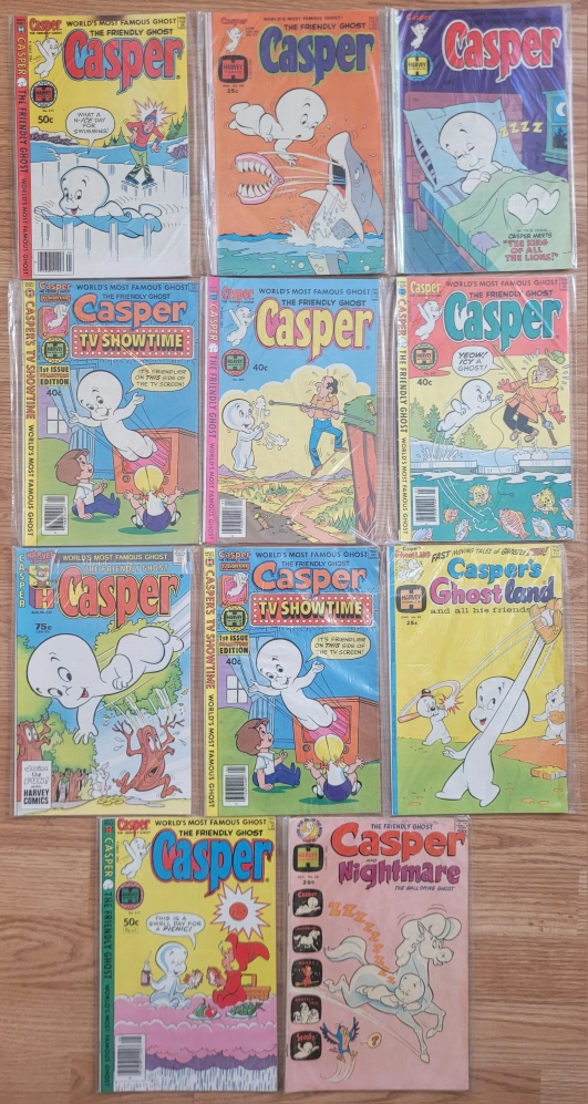 Lot of vintage Casper comic books. Various issues and covers. Great for collectors. Includes TV Show Time editions. Good condition in sleeves.