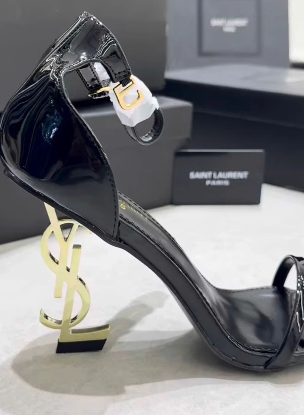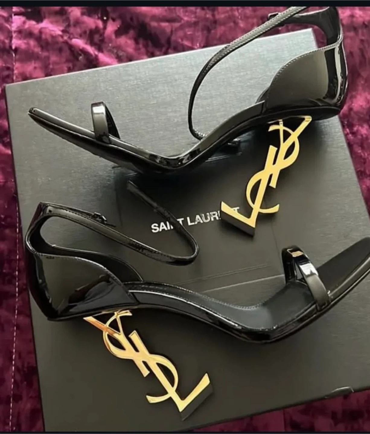 Black patent leather Saint Laurent Opyum heels with gold YSL logo heel. Doesn’t Comes with original box and dust bag. Women's size 7.