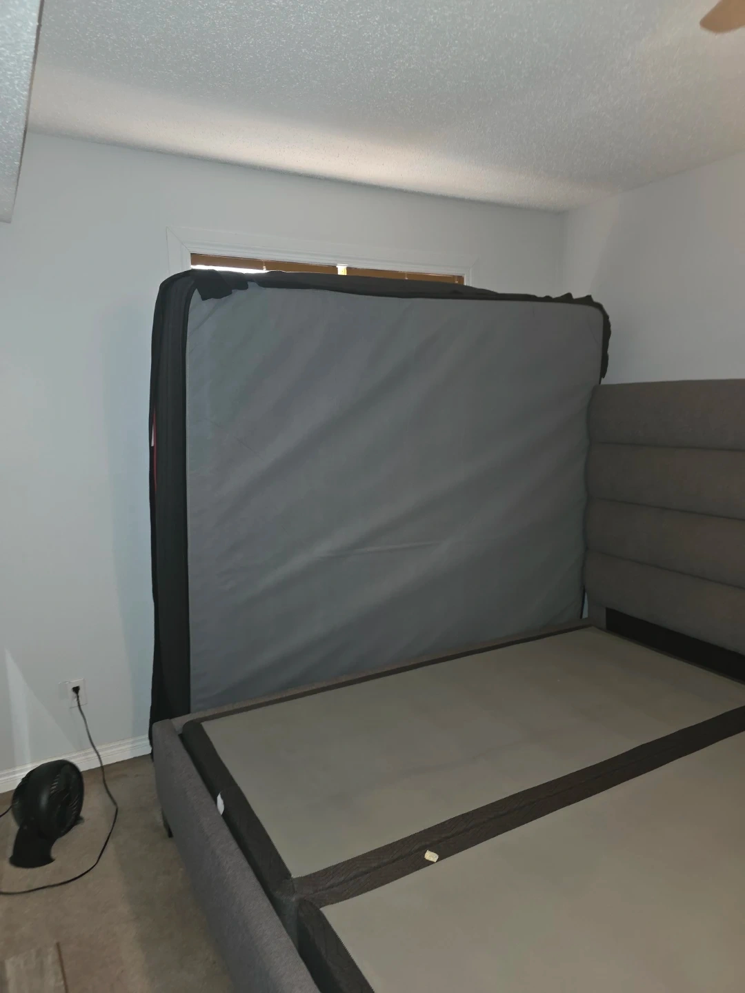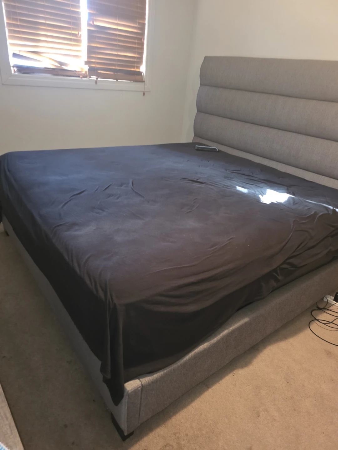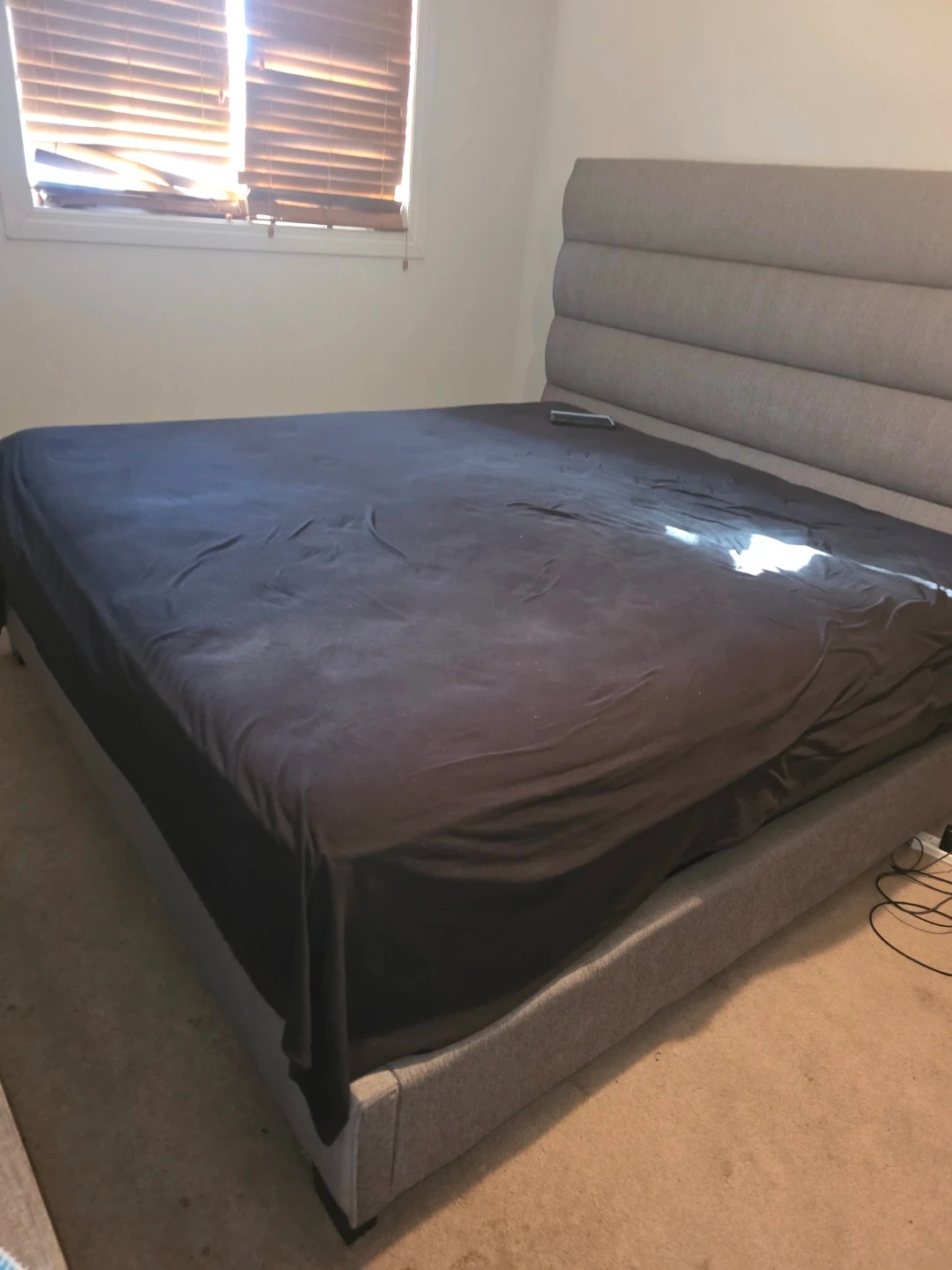 Grey Upholstered King Bed Frame and Bed with Tufted Headboard