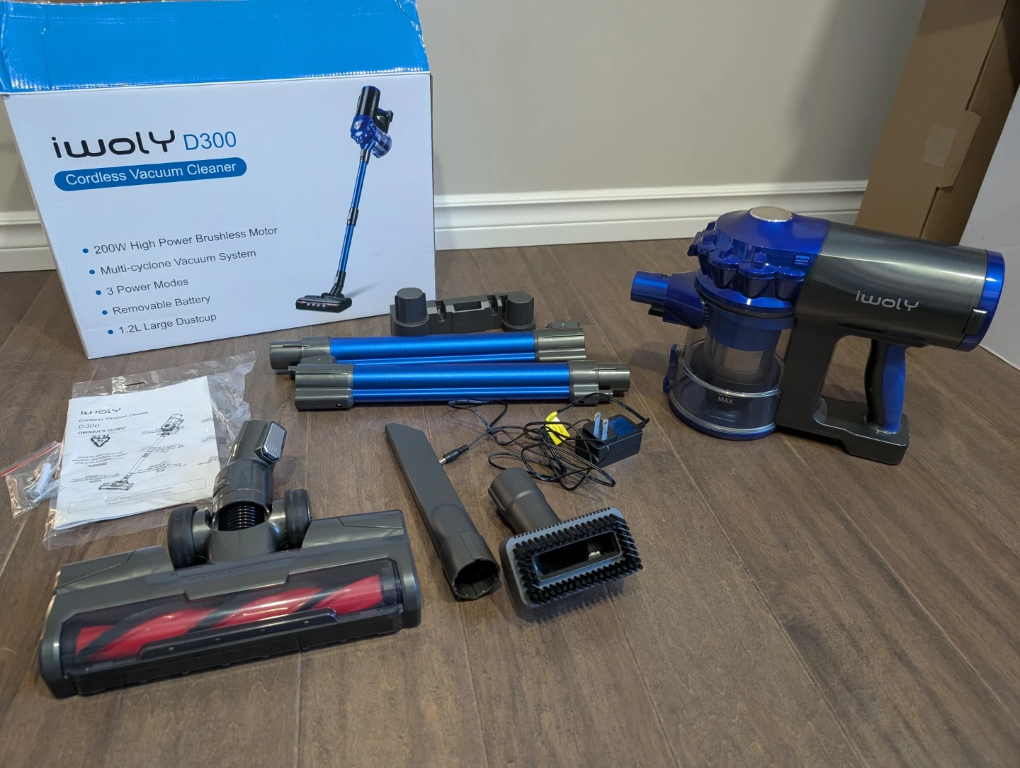 Like new Iwoly D300 cordless vacuum for sale. 28Kpa, 38 minutes run time, powerful stick vacuum, detachable battery, 2 modes, HEPA filter, dust cup, for hardwood floors, carpet, pet hair, tile, $80 FIRM.