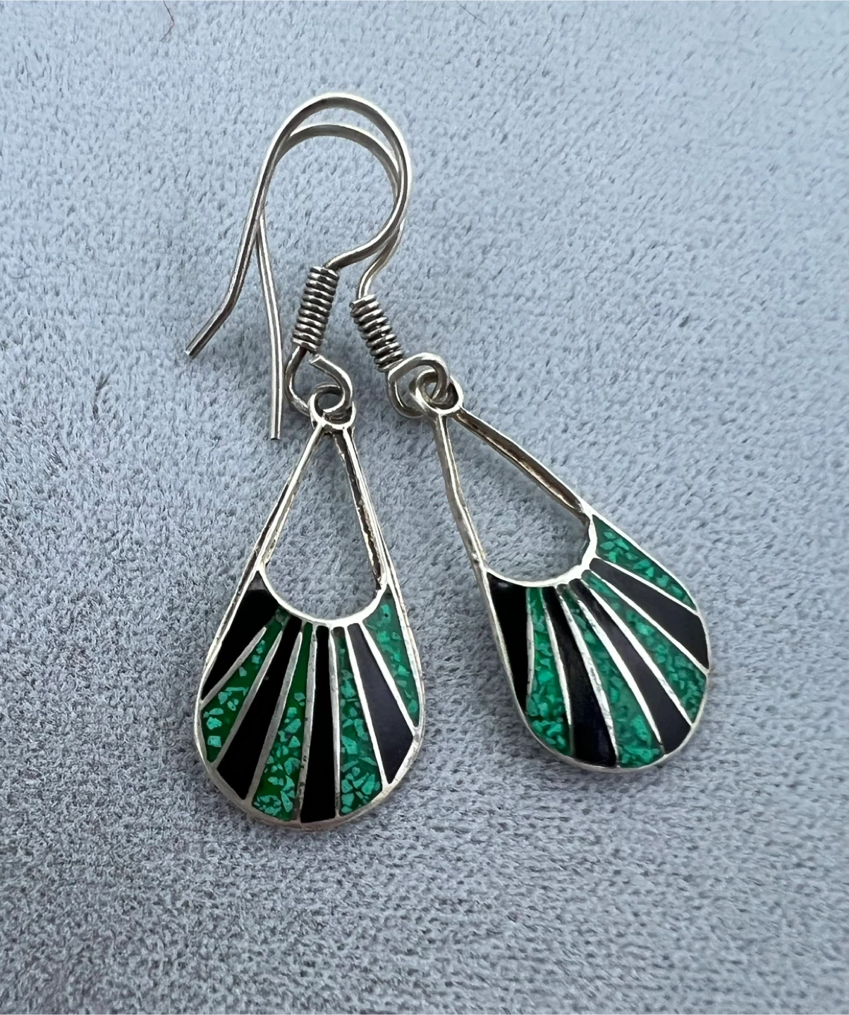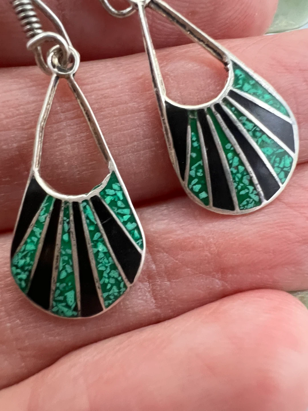 Inlaid with crushed malachite and sleek black onyx