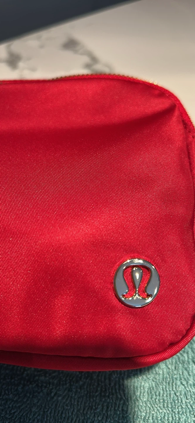 This Lululemon Everywhere Belt Bag is in a vibrant red colour. It's perfect for keeping your phone, keys, and wallet handy while you're on the go. The bag features multiple interior pockets for organization.