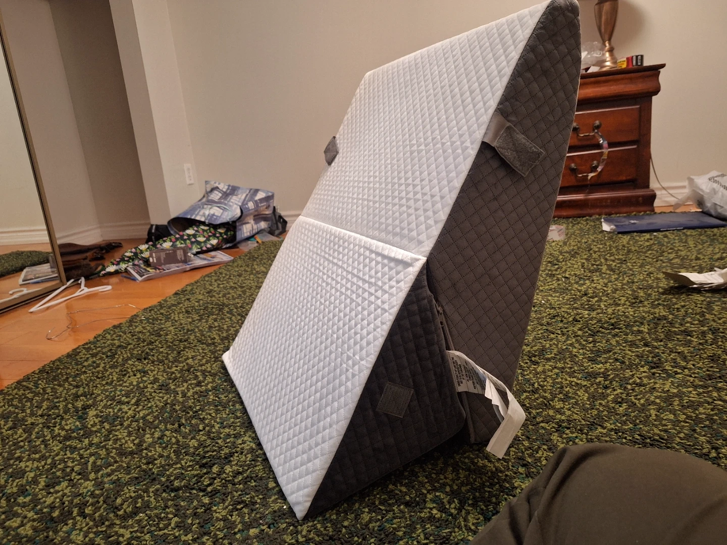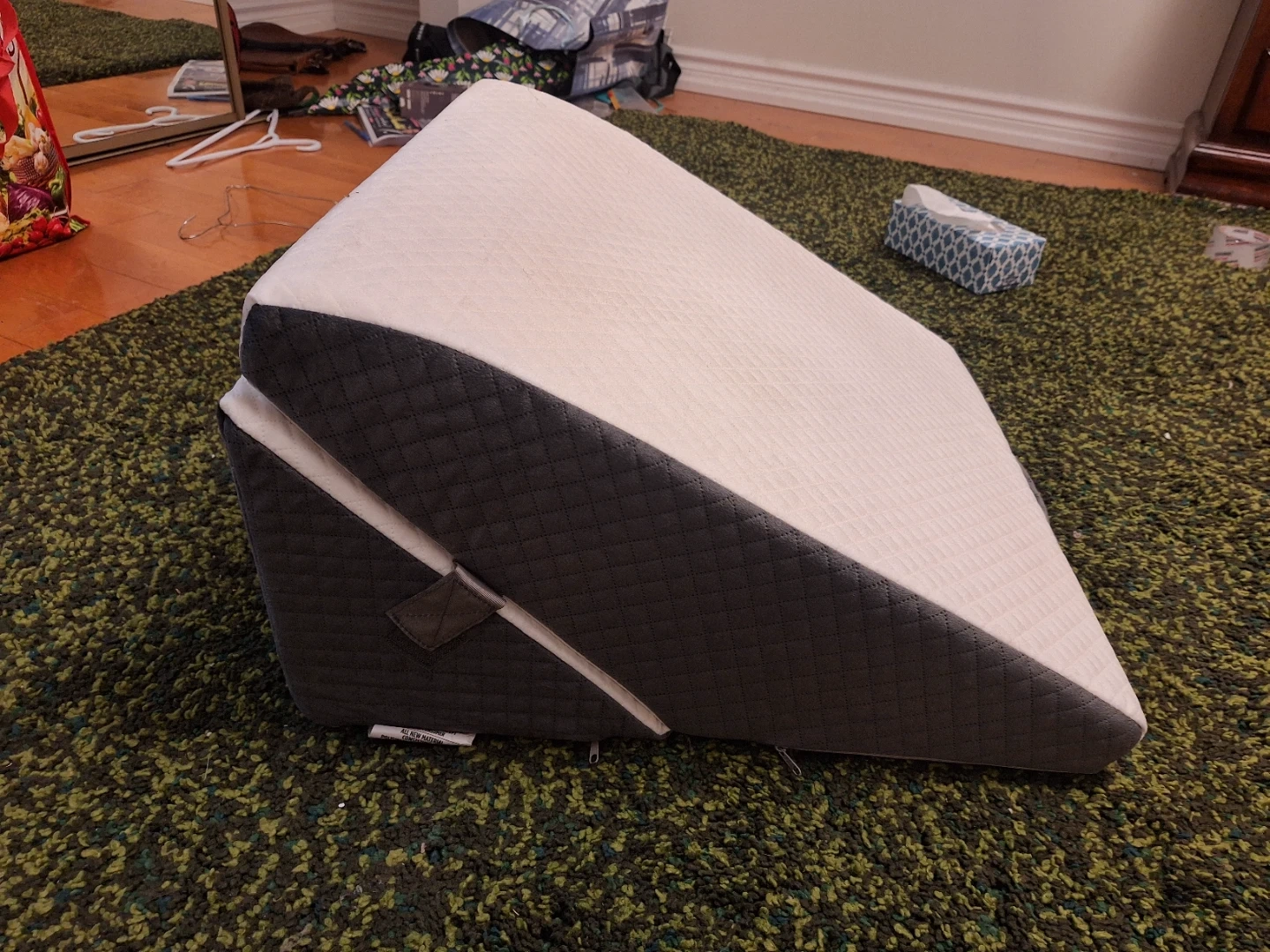 great for anyone who has trouble sleeping on a flat bed or can't afford a medical bed. clean, barely used.