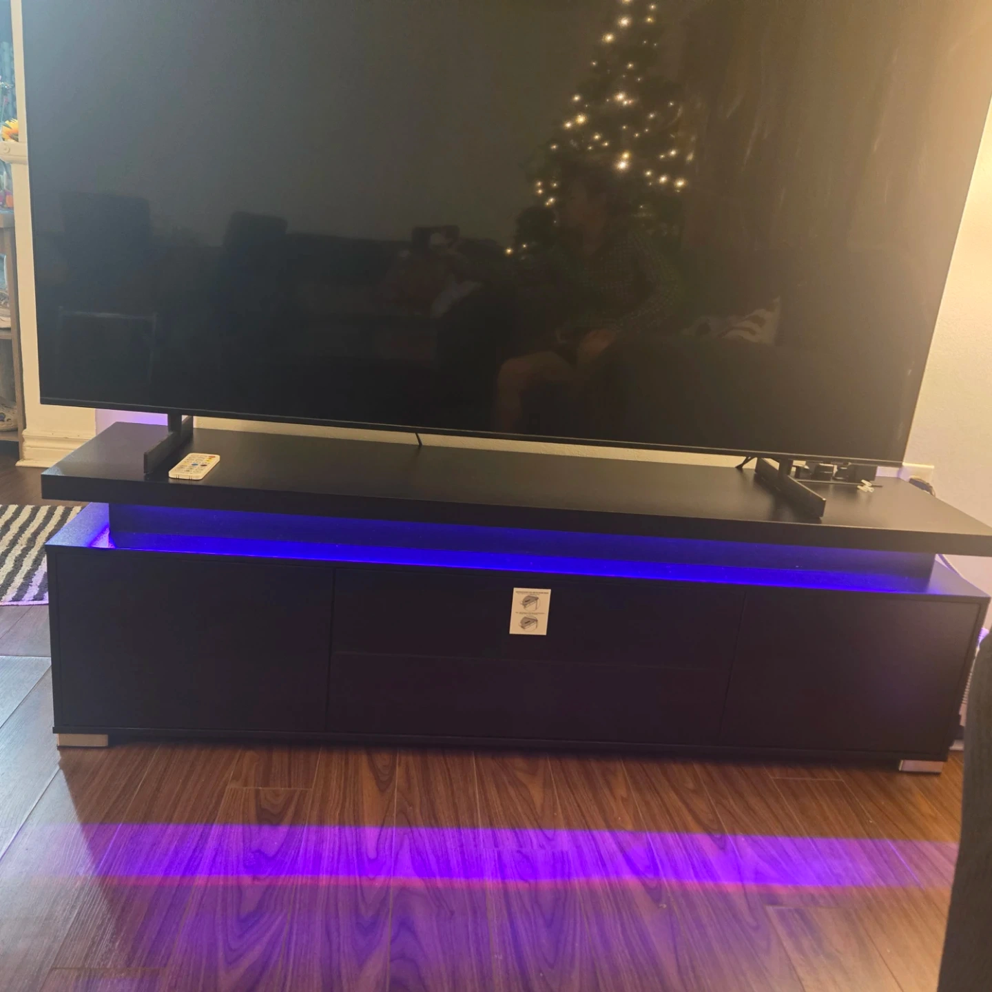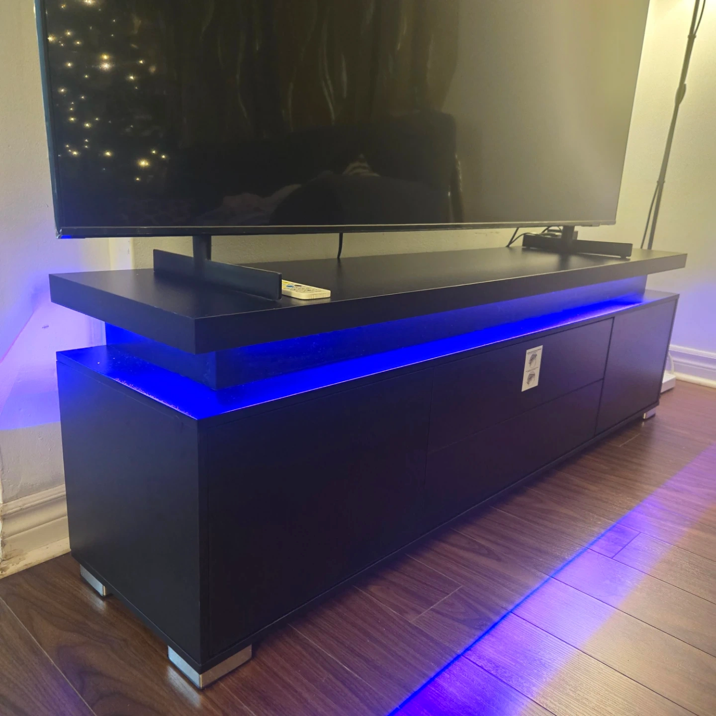 Selling a Rolanstar TV stand in black! It features LED lights, adding a modern touch to your entertainment setup. Perfect for TVs ranging from 32 to 65 inches. It also has a power outlet and storage space for your media devices. Check price in Amazon. Still in the box.