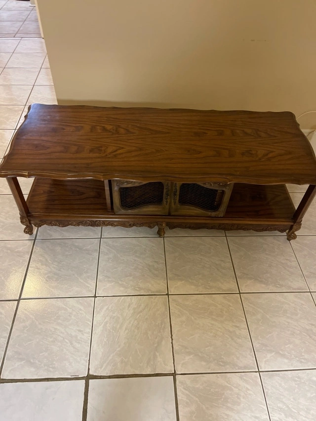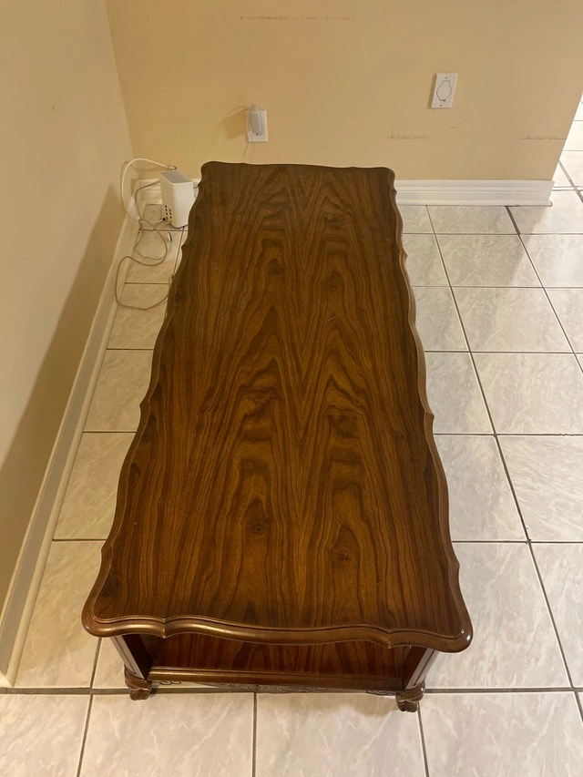 Add a touch of vintage charm to your living space with this elegant wood coffee table, featuring a bottom shelf for extra storage. It's in good condition and ready to be the centerpiece of your living room. I've taken good care of it, though it is a vintage item, so please appreciate its character. Material: Wood, Style: Vintage, Features: Bottom shelf for storage. This coffee table is eagerly awaiting a new home. If the ad is still up, then yes, it is still available. Cash accepted.