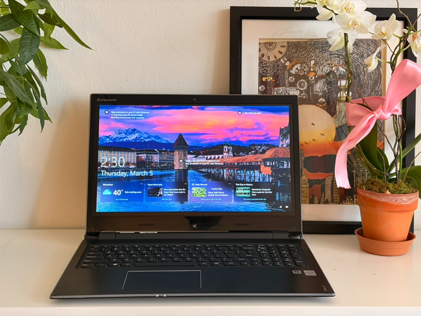 This is a Lenovo IdeaPad laptop. It features a full keyboard and trackpad. It's a reliable machine for everyday tasks.