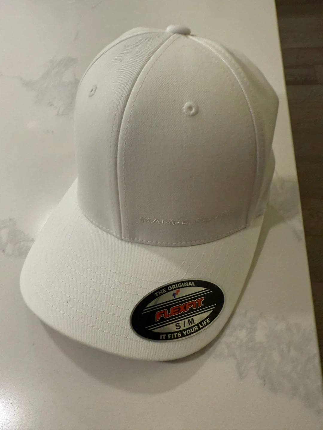 Selling a white Range Rover Flexfit hat in size S/M. It's in great condition and ready for a new home! The Flexfit technology ensures a comfortable fit. Perfect for everyday wear