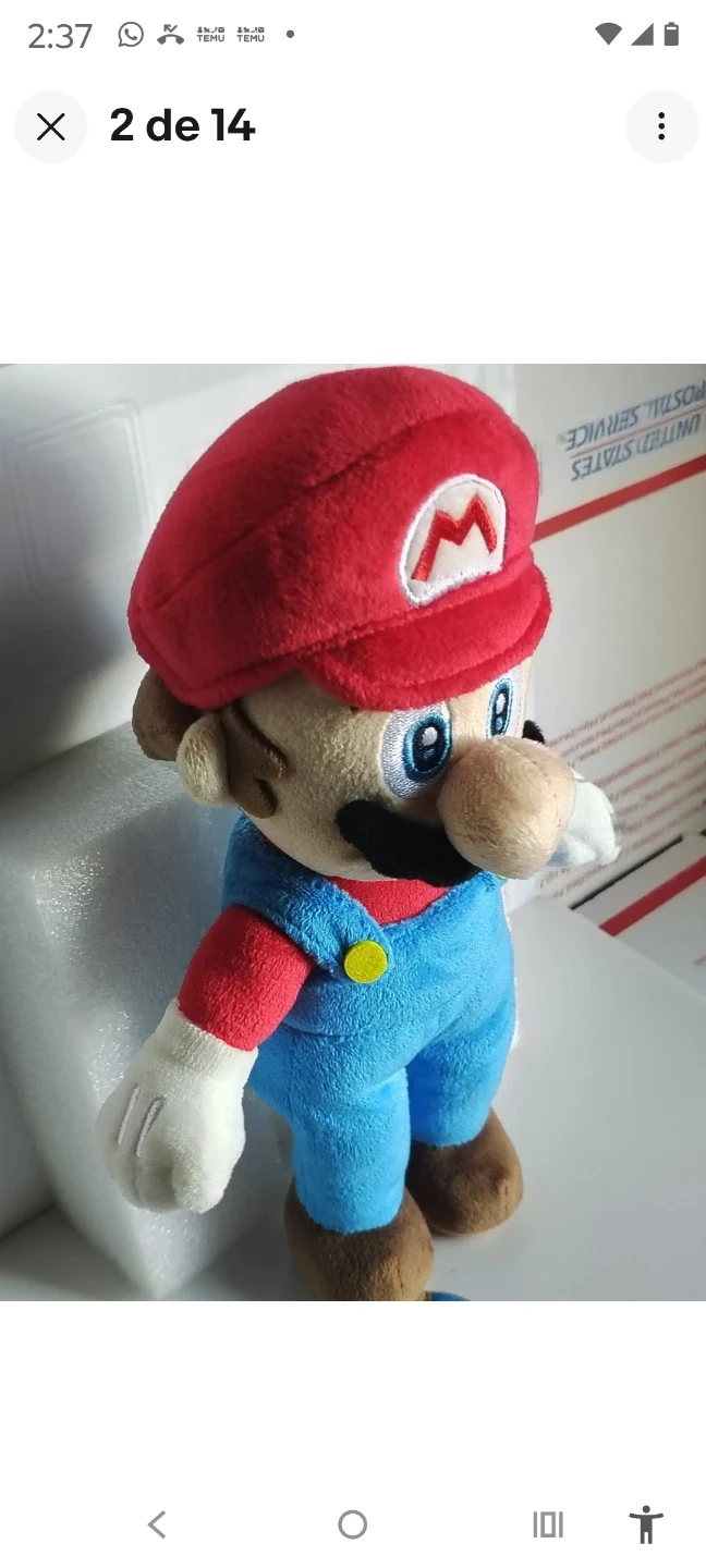 This is a plush toy of Super Mario. It's made of soft material and has the classic red hat and blue overalls. It's a fun collectible for fans!