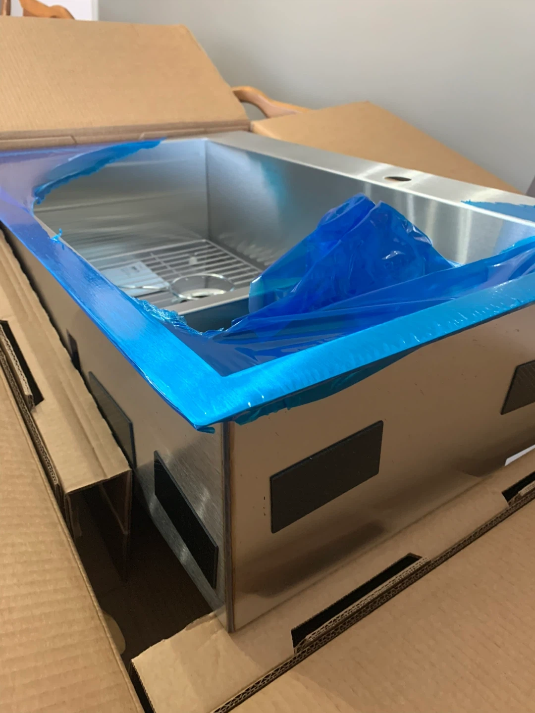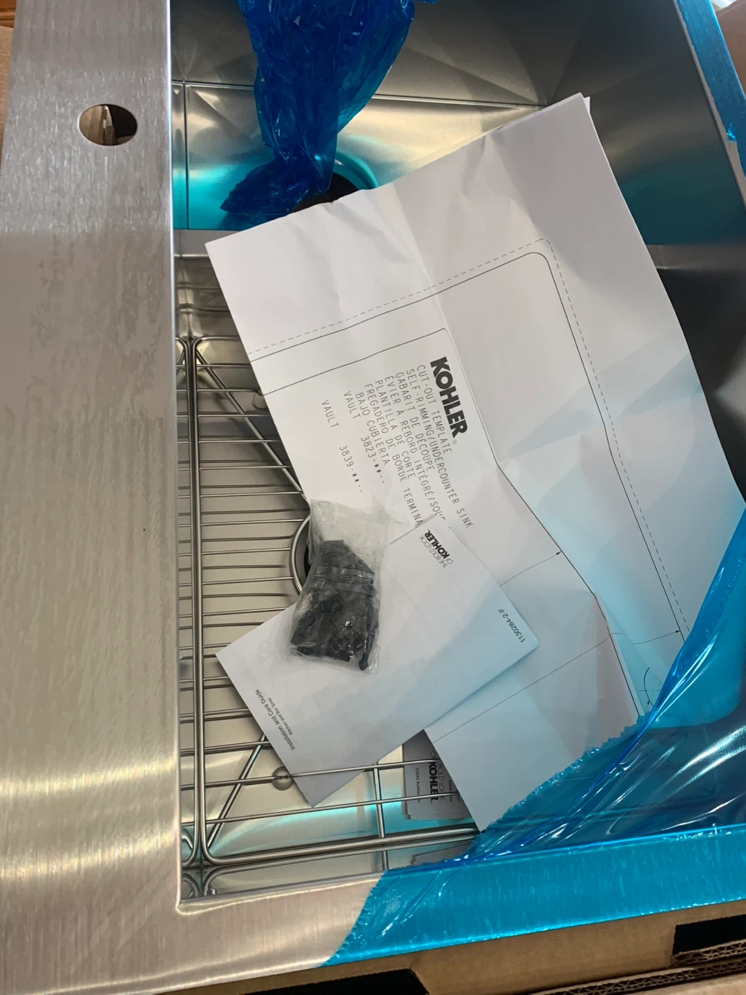 This is a new Kohler stainless steel top/ undermount kitchen sink. 33” It includes a sink grid and mounting hardware. It's made of durable stainless steel and features a spacious design.