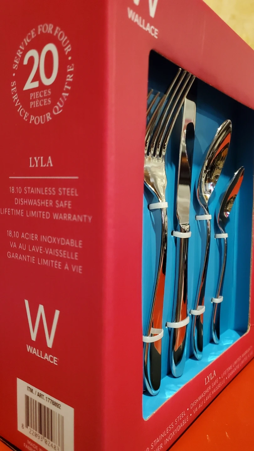 This Wallace LYLA cutlery set includes 20 pieces for four people. It's made from 18/10 stainless steel and is dishwasher safe. A lifetime limited warranty is included. It's suitable for everyday use or special occasions.