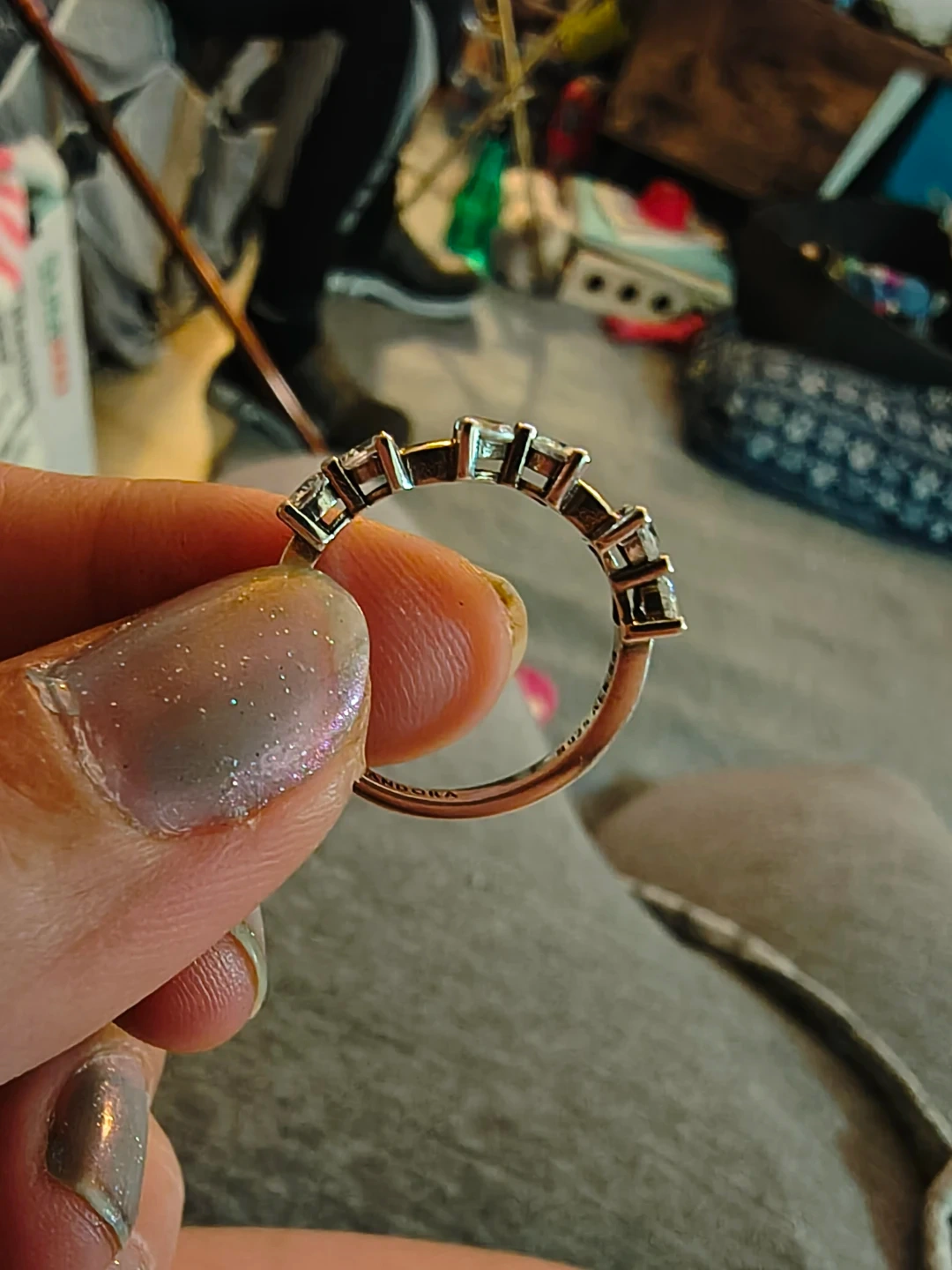 This Pandora ring features a delicate bow station design. It's crafted from sterling silver and accented with sparkling stones. A lovely addition to any jewellery collection! New, never worn, size 7.