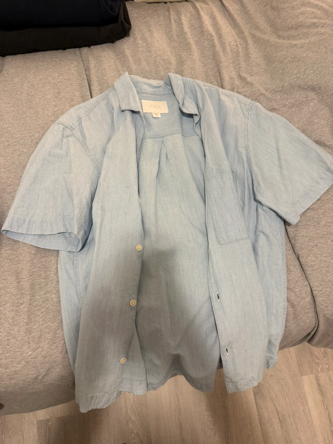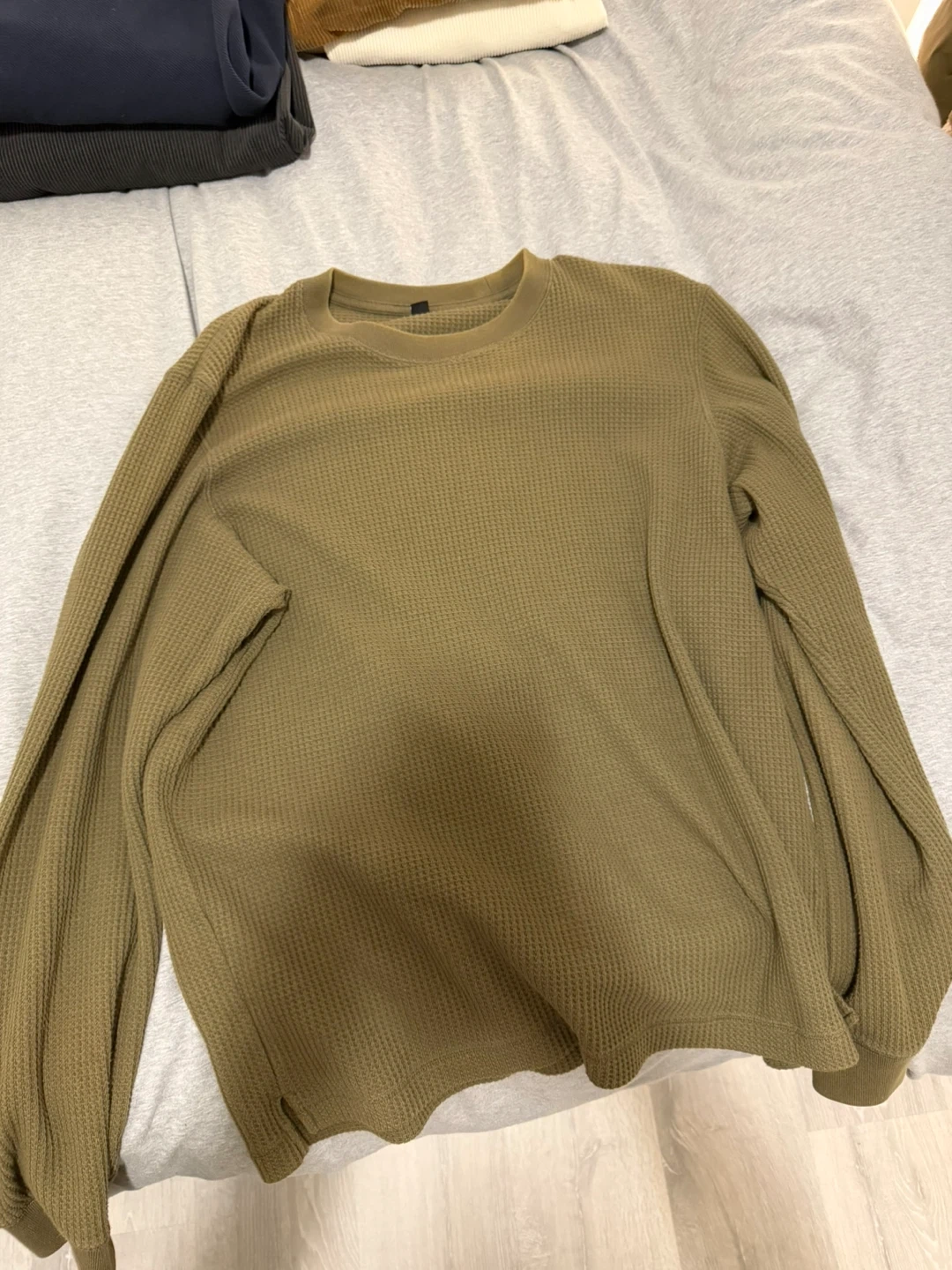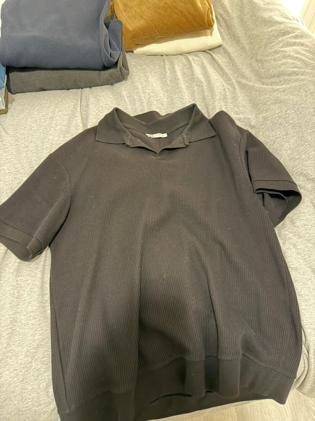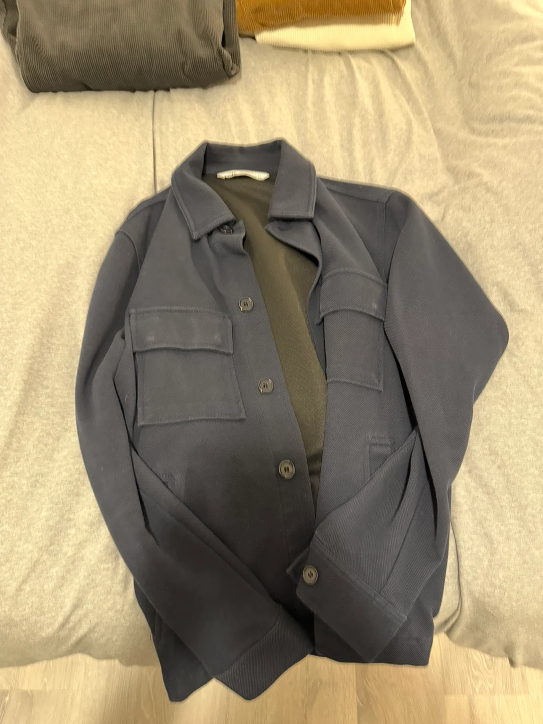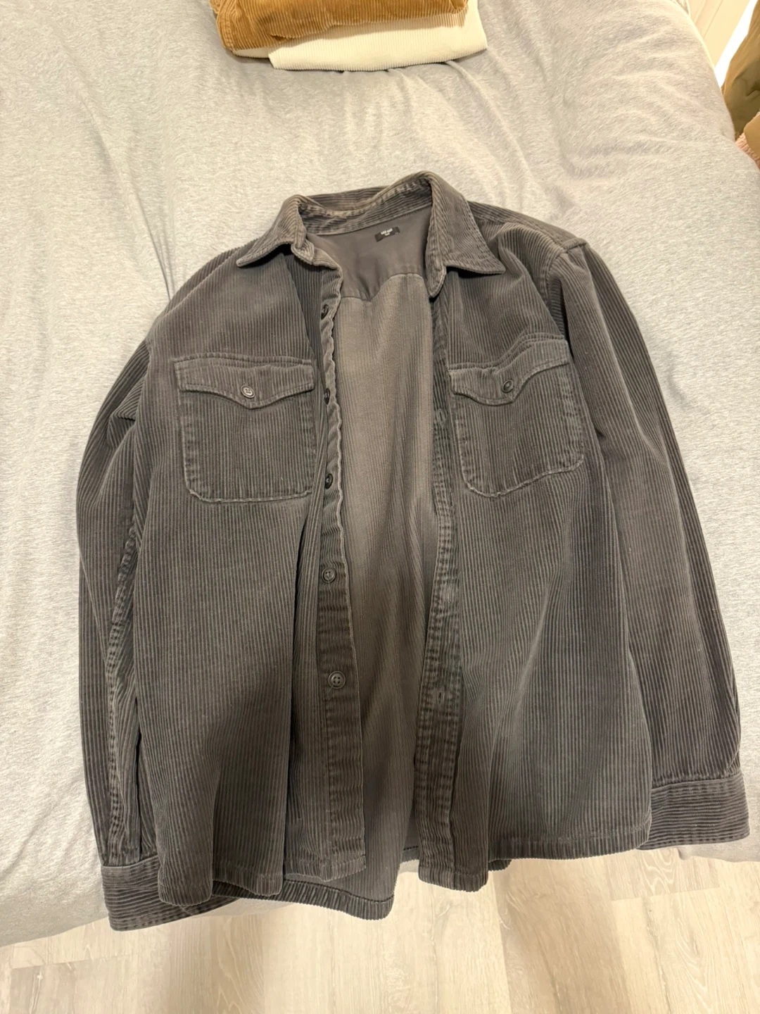 Bundle includes two corduroy shirts, a waffle knit long sleeve shirt, and a utility-style jacket. All items are in good condition and ready for a new wardrobe. This collection offers versatile layering options for cooler weather.
