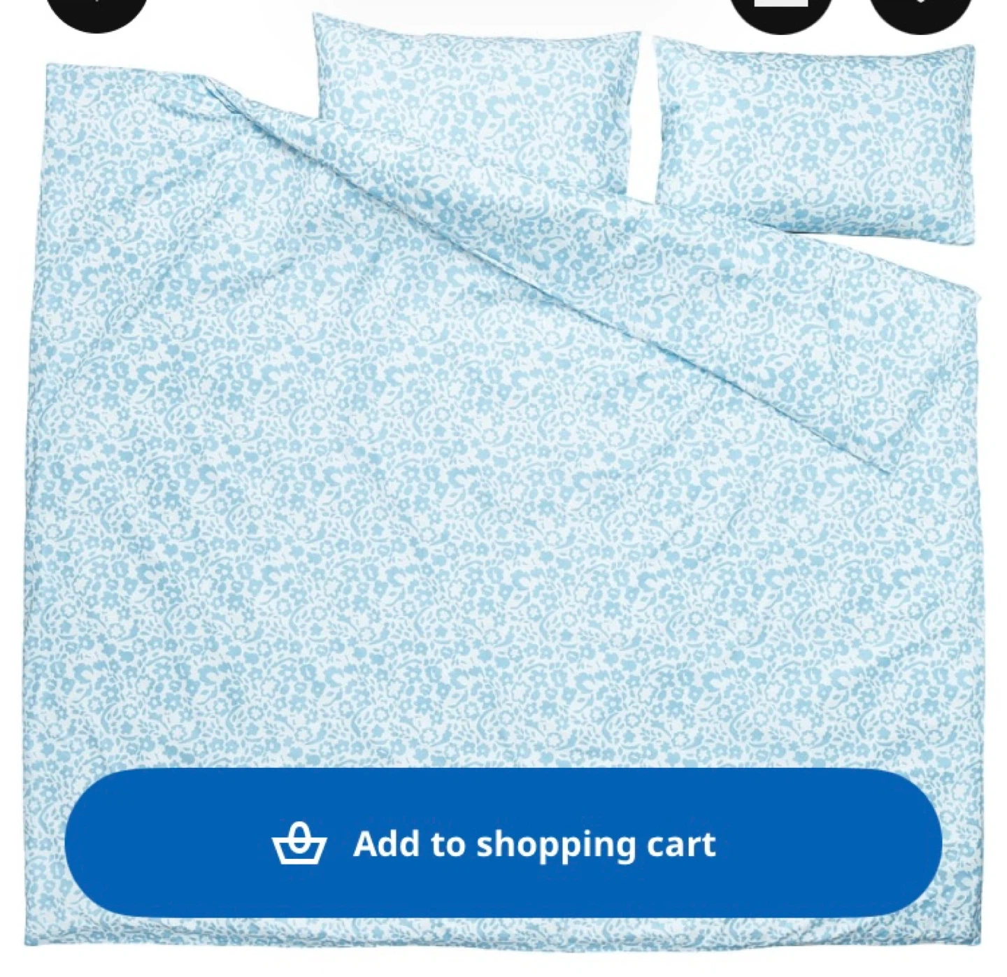 Ikea bed linen. Used, like new. Contains duvet cover and two pillow cases. Queen sized. Selling because I don’t like the material (personal preference). Also, the duvet cover doesn’t have any buttons and buttonholes sewed in. Comes from a smoke free, but cats household.